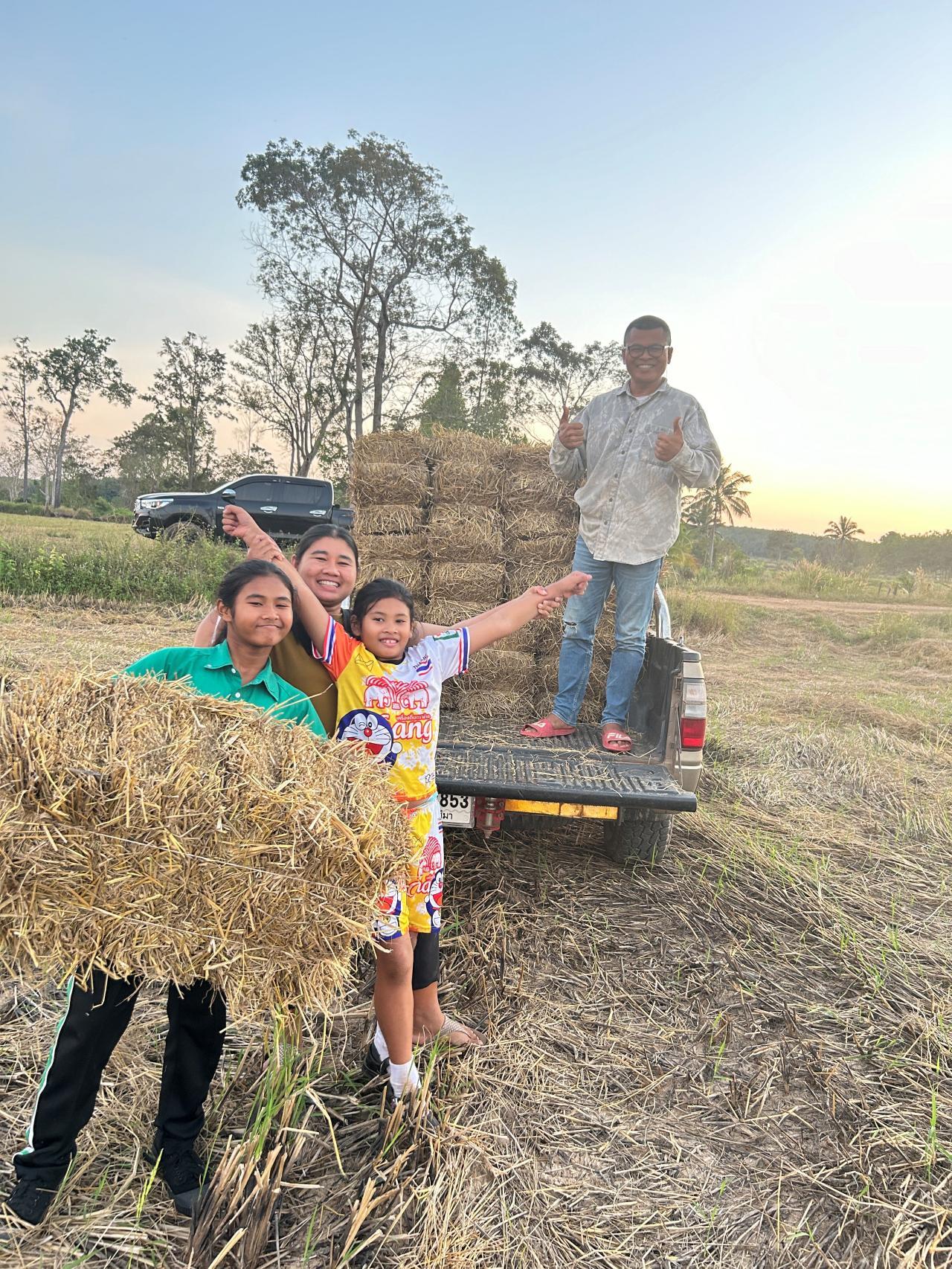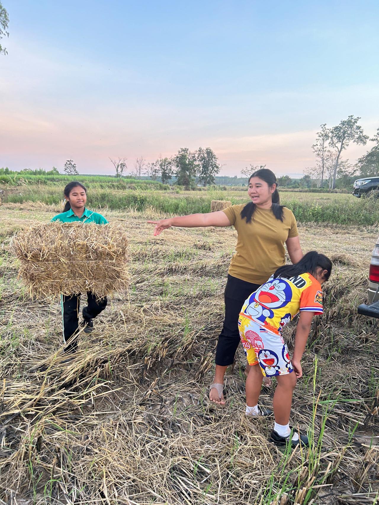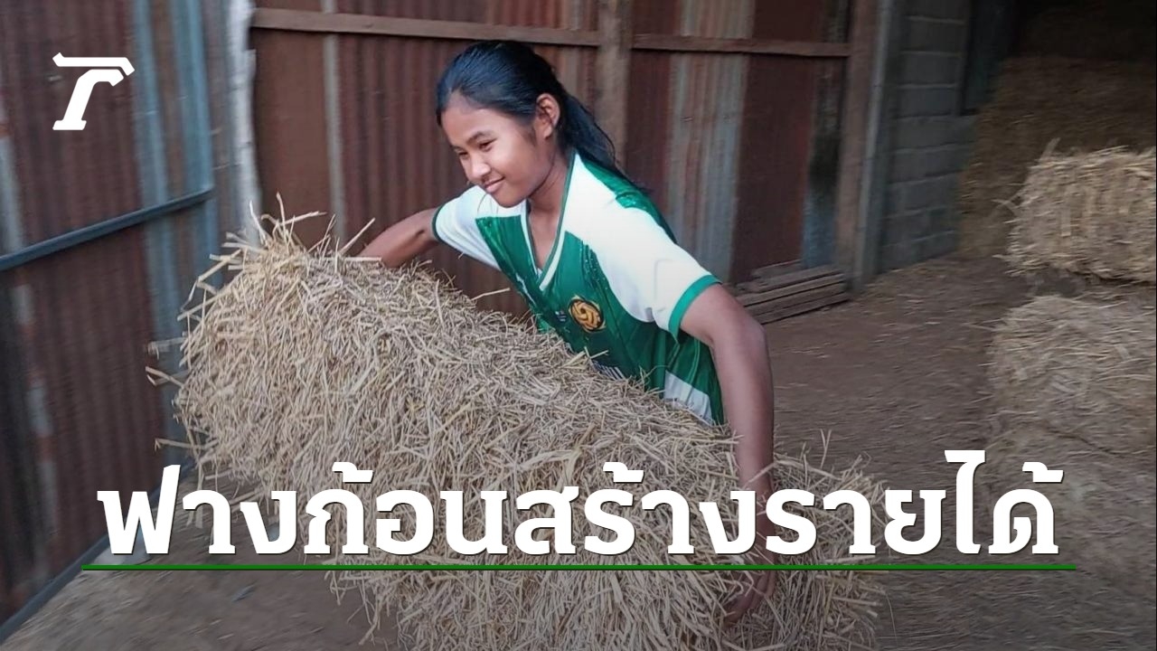 น้องขวัญข้าว สาวน้อยวัย 12 ปีชาวโคราช อยากหารายได้ช่วงปีใหม่ ช่วยพ่อแม่อัดฟางก้อนประดับงานฉลองส่งท้ายปีเก่าต้อนรับปีใหม่ในราคาก้อนละ 35 บาท สร้างรายได้งาม แล้วยังช่วยลดการเผาวัสดุเหลือใช้ทางการเกษตรต้นเหตุ PM 2.5