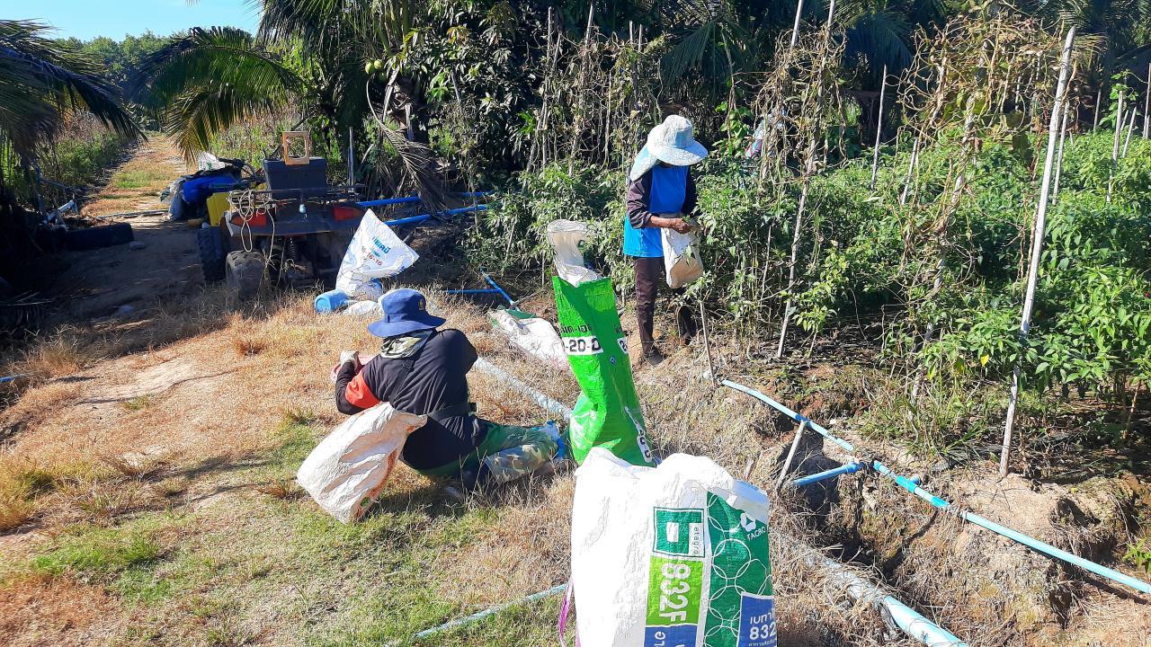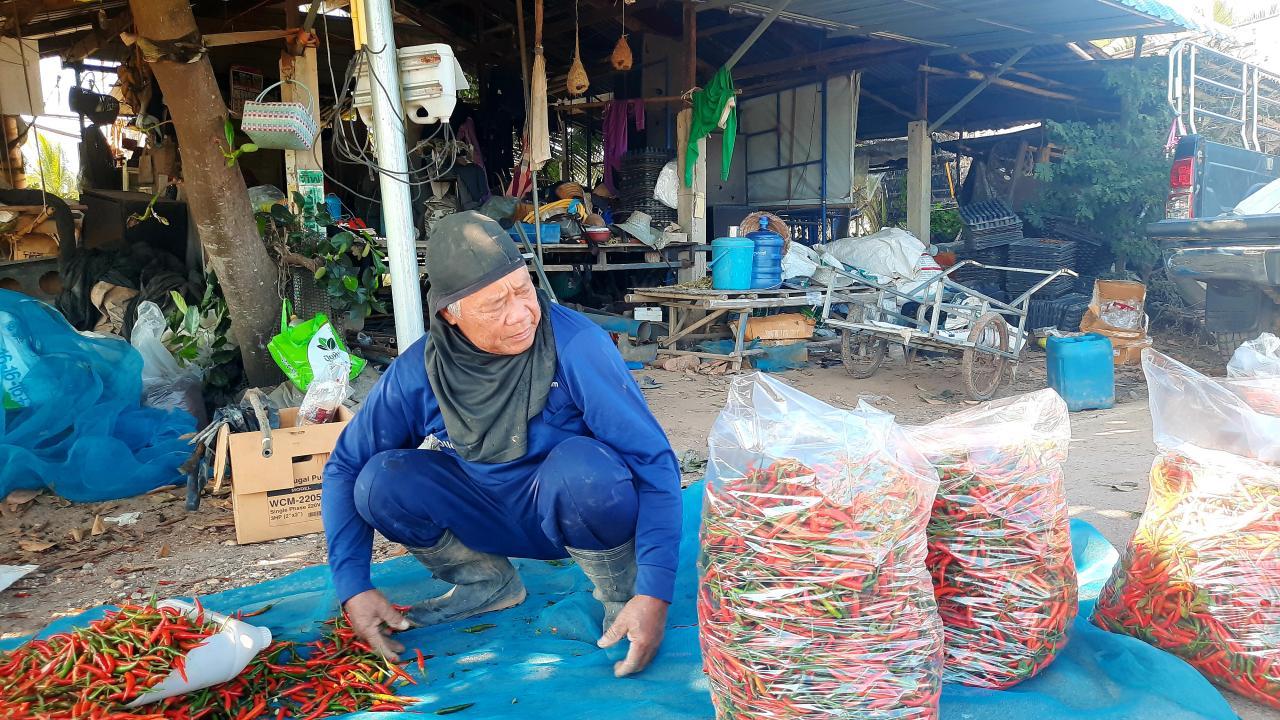 คนงานรับจ้างเก็บพริก กล่าวด้วยว่า ทีมตนรับเก็บพริกมานานถึง 7 ปีแล้ว โดยจะรับในพื้นที่อยู่ 12 สวน ส่วนตนเคยเก็บได้สูงสุด 80 กิโลกรัมต่อวัน จะได้ค่าแรงวันนั้น 800 บาท ซึ่งก็ขึ้นอยู่กับจำนวนพริกของสวนด้วย มีเยอะก็เก็บได้เยอะ มีน้อยก็เก็บได้น้อย เมื่อรวมกับสามีที่มาด้วยกัน ก็จะได้วันละประมาณ 1,000-1,400 บาท เดือนๆ หนึ่งตกประมาณ 70,000 บาท ทำให้มีรายได้กว่า 1 แสนบาทต่อฤดูเก็บเกี่ยวพริก ในช่วงเดือนธันวาคมถึงมีนาคม รวม 4 เดือน พอเข้าเดือนเมษายนพริกก็เริ่มหมดลง ชาวสวนก็เริ่มปลูกพืชชนิดอื่น ตนกับสามีก็จะไปหารับจ้างทำสวนกับชาวสวน แต่วันนี้คงได้น้อยลง เพราะพริกสวนนี้ยังไม่แดงเต็มที่และมีน้อย แต่ก็มีสวนพริกอื่นๆ ที่รอให้ไปเก็บเช่นกัน.