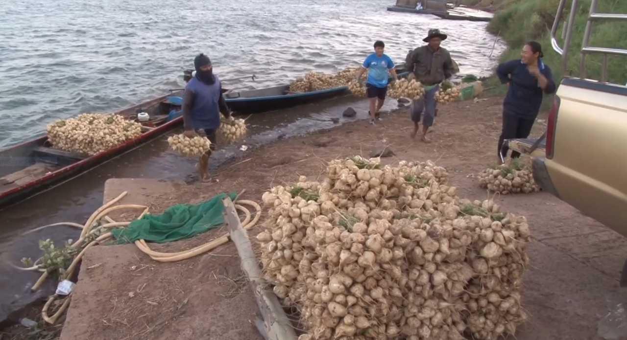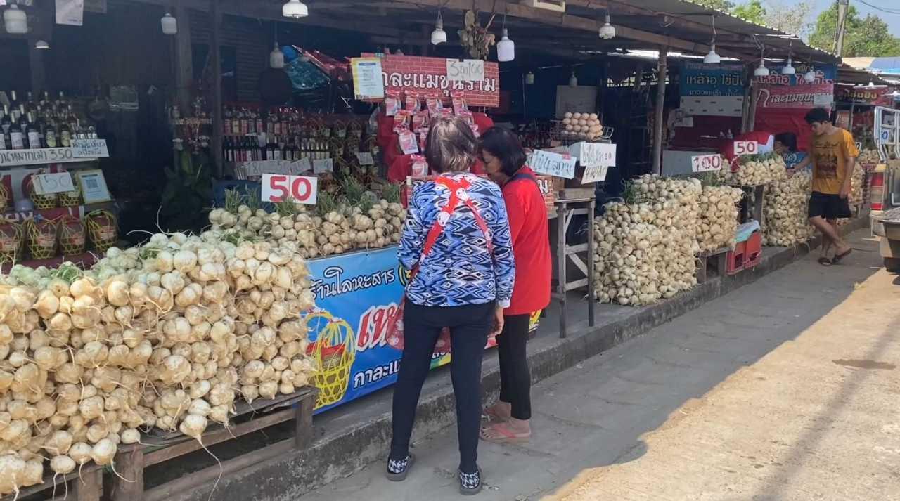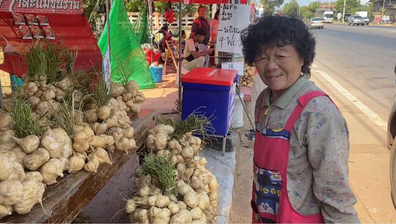 แม่ค้าชาวสวนมันแกวหวานริมโขงที่นครพนม โอดยอดขายมันแกวหวานช่วงงานนมัสการพระธาตุพนม ปี 2567 ยอดขายลดกว่าครึ่งต่ำกว่าทุกปี เชื่อประชาชนเน้นทำบุญ ไม่เน้นจับจ่ายซื้อของกระทบเศรษฐกิจ