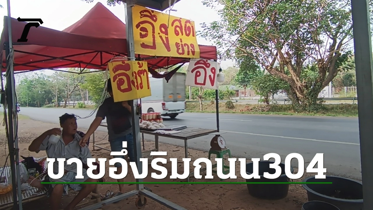 เมื่อวันที่ 19 มี.ค. 67 ผู้สื่อข่าวรายงานว่า ภายหลังจากที่เริ่มมีฝนตกลงมาในหลายพื้นที่ของจังหวัดนครราชสีมาช่วงนี้ ที่บริเวณริมถนน 304 ปักธงชัย–กบินทร์บุรี ช่วงบ้านปอแดง ต.อุดมทรัพย์ อ.วังน้ำเขียว จ.นครราชสีมา ต่างก็เริ่มมีพ่อค้าแม่ค้านำอึ่งมาวางขายริมทางกันเป็นจำนวนมาก ซึ่งก็มีทั้งอึ่งแบบตัวเป็นๆ และอึ่งเสียบไม้ย่างพร้อมรับประทาน เพื่อให้ผู้ที่ใช้เส้นทางสายดังกล่าวได้เลือกซื้อหากันอย่างคึกคัก และเนื่องจากตอนนี้เป็นช่วงฝนแรกทำให้ราคาอึ่งที่นำมาวางขายค่อนข้างสูง โดยอึ่งเป็นราคาก็จะอยู่ที่กิโลกรัมละ 500–600 บาท ขณะที่อึ่งย่างก็จะมีเริ่มต้นตั้งแต่ไม้ละ 30 ไปจนถึง 150 บาท แล้วแต่ขนาดและเป็นอึ่งธรรมดาหรืออึ่งไข่