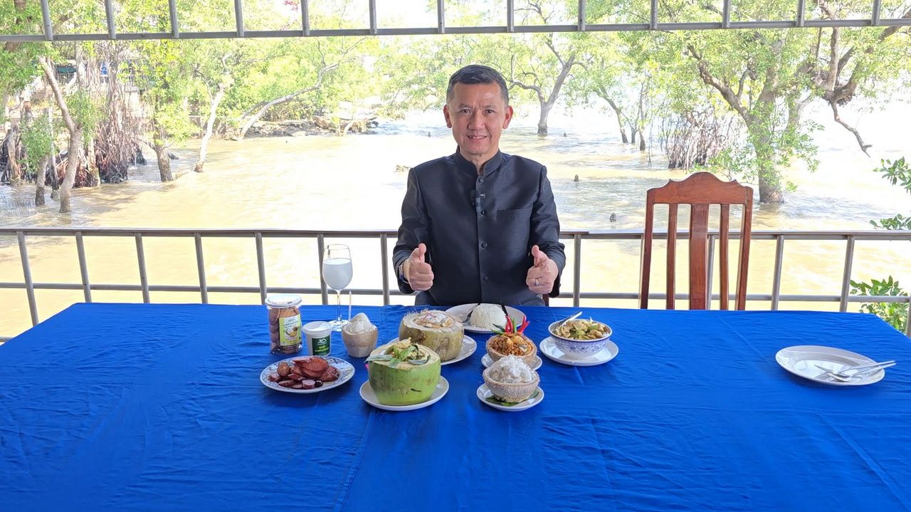 ผู้ว่าฯ สมุทรสงคราม ลงพื้นที่ดอนหอยหลอด เร่งส่งเสริมการบริโภคมะพร้าว - ผลิตภัณฑ์แปรรูป กู้วิกฤตราคามะพร้าวตกต่ำ เหลือเพียงผลละ 2–3 บาท ชูเมนูเด็ดชวนนักท่องเที่ยวลิ้มลอง หวังกระตุ้นยอดขาย และช่วยเหลือเกษตรกรชาวสวน