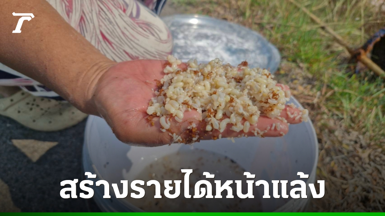 ชาวบ้านที่นครราชสีมา ว่างจากการทำนา ใช้อุปกรณ์แหย่ “ไข่มดแดง” ไว้กินในครอบครัว ถ้าเยอะก็จะขาย กิโลละ 500 บาท สร้างรายได้ช่วงหน้าแล้ง บางคนทำเป็นรายได้หลัก