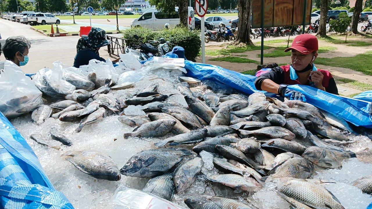 เกษตรกรผู้เลี้ยงปลาในกระชังที่ จ.เลย โอดครวญ ปลานิลที่เลี้ยงไว้ริมแม่น้ำโขง น็อกน้ำตายกว่า 40 ตัน หลังฝนตกหนักจนน้ำล้นตลิ่ง ตัดใจช้อนใส่ถังเอามาขายกิโลละ 50 บาท ข้างๆ ศาลากลางจังหวัด หวังลดการขาดทุน ชาวบ้านรู้ข่าวแห่ไปซื้อเพียบ