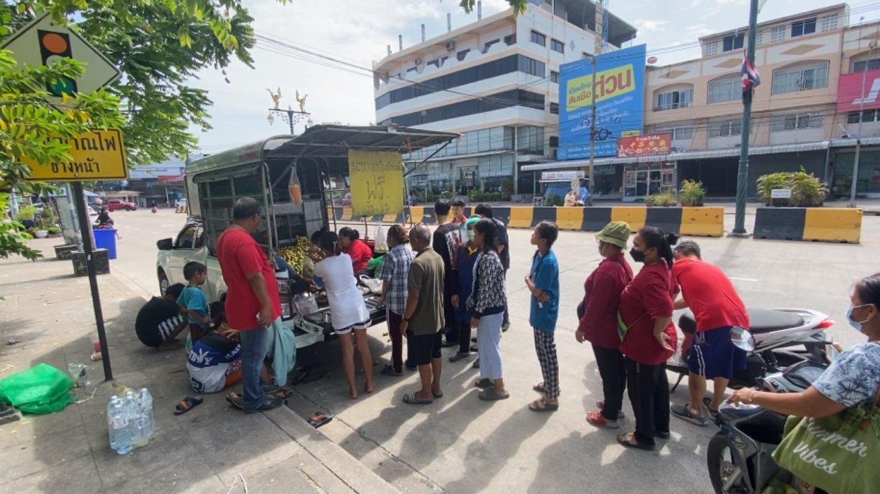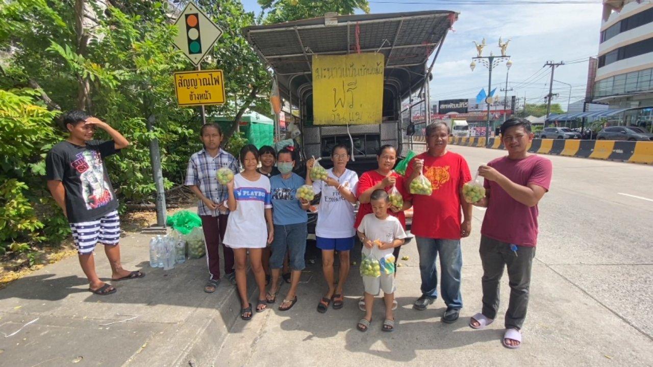หนุ่มใหญ่พ่อค้ามะนาวขนมะนาวแป้นบ้านแพ้วกว่า 2 ตัน มาแจกฟรีแก่ประชาชนที่หน้าตลาดวิศิษฐ์ชัย อ.บ้านบึง จ.ชลบุรี เผย เพื่อสร้างรอยยิ้มให้กับชาวบ้านและลูกค้า ถือเป็นการทำบุญและคืนกำไรให้ลูกค้า ก่อนจะพาญาติไปพักผ่อน ทำบุญต่อไป