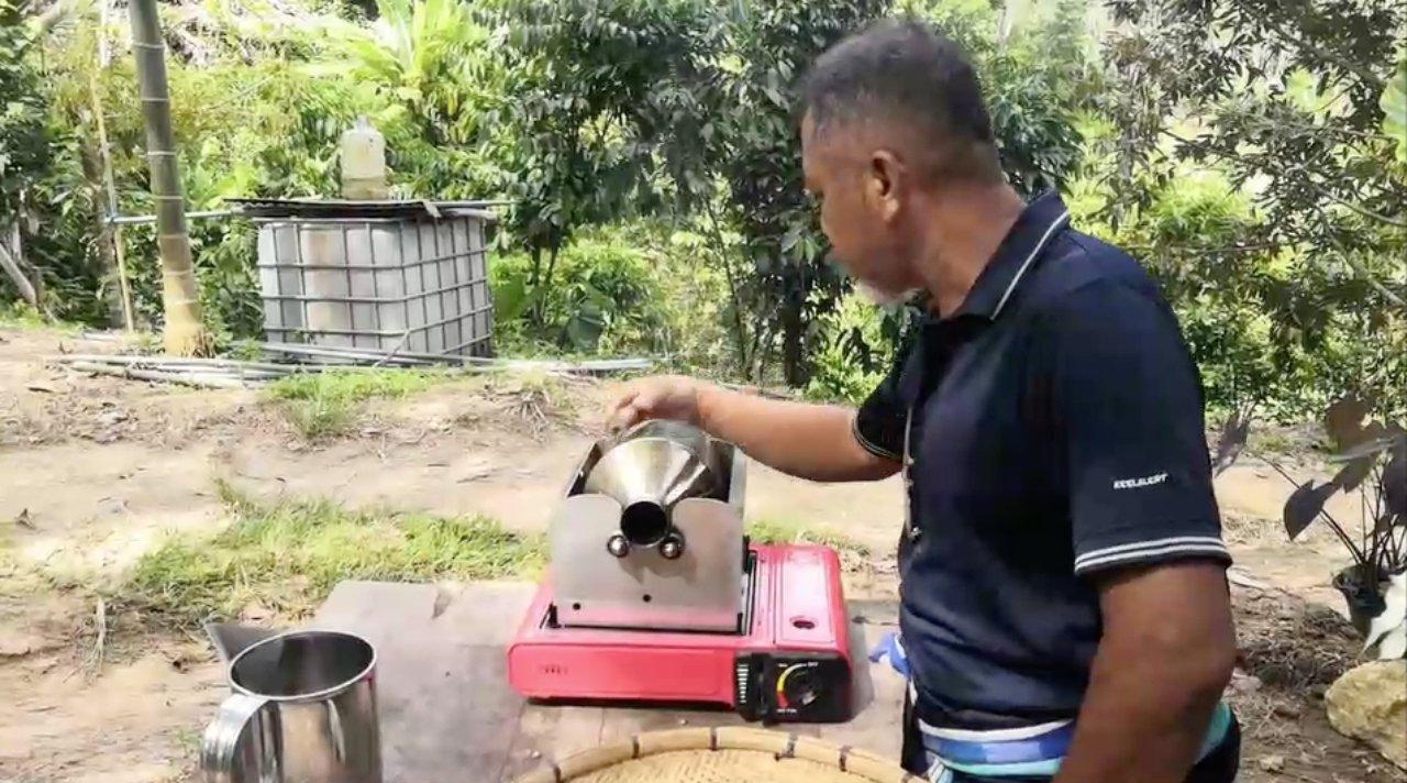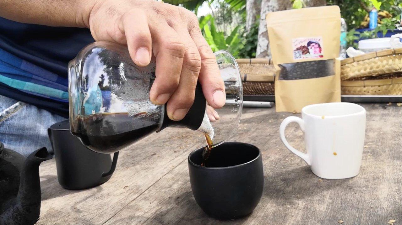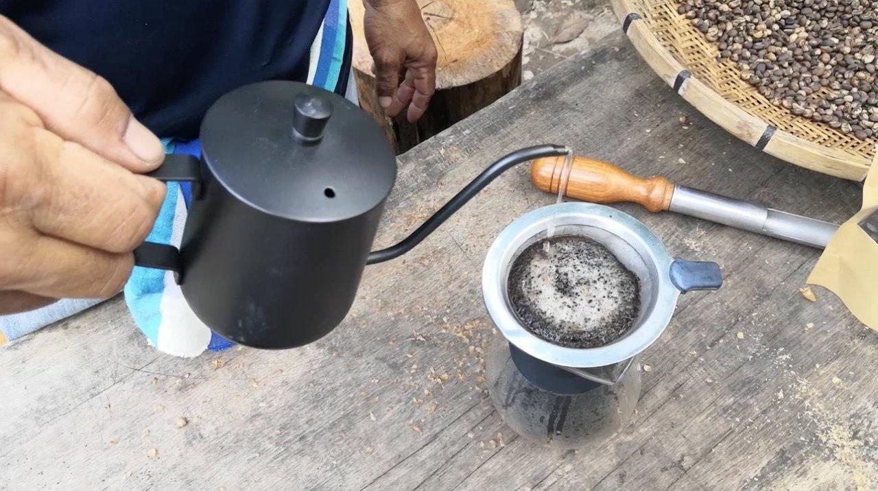 เจ้าของสวนกาแฟ กล่าวต่อว่า สำหรับกาแฟที่ปลูกไว้เป็นสายพันธุ์โรบัสต้า เมื่อกาแฟให้ผลผลิตเบื้องต้นคาดว่าจะเก็บไว้กินเองหรือรับประทานเอง หลังจากได้เมล็ดกาแฟสุกแล้ว ก็นำไปตากแดดให้แห้ง แล้วนำมากลึงด้วยไม้ทำเอง และซื้อเครื่องคั่วแบบหมุนมือ มีการวัดอุณหภูมิในหม้อคั่ว ตั้งเวลาในการคั่ว ว่าเราจะกินแบบไหนตามใจเรามีทั้งคั่วแบบธรรมดา แบบกลาง และแบบเข้มข้น แล้วแต่เราต้องการ หลังจากนั้นก็นำไปใส่ที่บดเมล็ดกาแฟด้วยมือ ก่อนจะนำไปใส่ในถ้วยกรองแล้วใส่น้ำร้อน ดื่มแบบดริปไม่ต้องใส่น้ำตาล ก็สามารถที่จะรับประทานได้แล้วให้รสชาติกาแฟที่ละมุนลิ้น และยังหอมกลิ่นกาแฟแท้ๆ