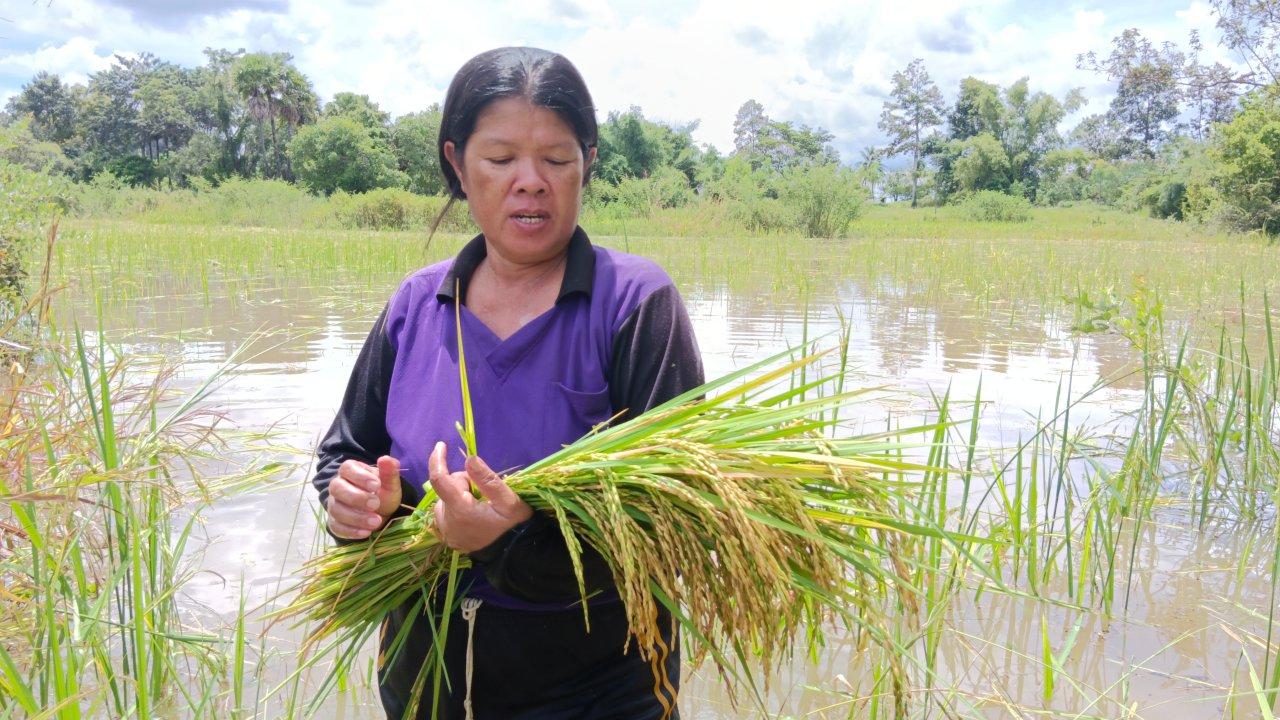 นางประยงค์ บุญผ่อง อายุ 56 ปี ชาวนาในพื้นที่หมู่ 2 บ้านหัวนา กล่าวว่า ตนทำนาปลูกข้าวไว้ 3 ไร่ เมื่อปี 2565 ที่ผ่านมา ตนมีประสบการณ์ถูกน้ำท่วมนาข้าวจนไม่เหลือข้าวสักเม็ดมาแล้ว เพราะชะล่าใจ คิดว่าคงไม่รุนแรง แต่มาปีนี้ตนจึงไม่รอช้า เมื่อเห็นน้ำเริ่มเอ่อล้นไหลเข้านา จึงพาครอบครัวเร่งเก็บเกี่ยวในทันที เพราะเกรงว่าจะเอาไม่ทัน