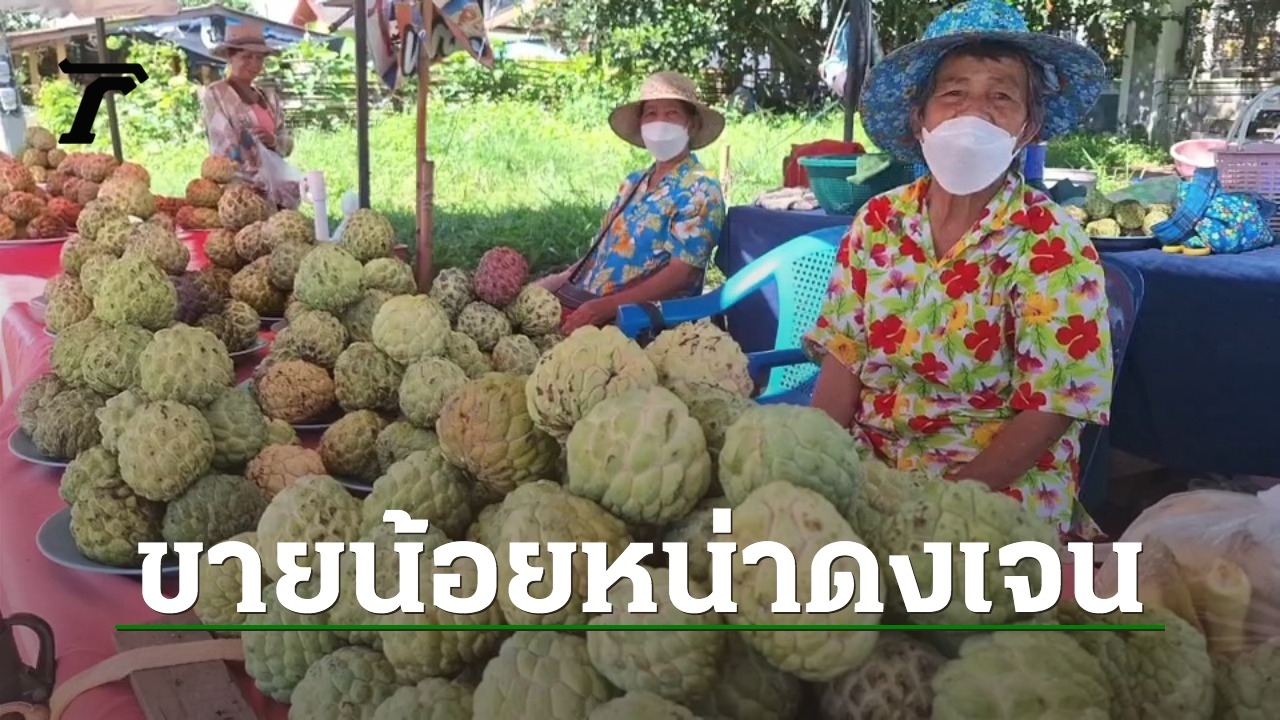 เมื่อวันที่ 21 ก.ย. 66 ผู้สื่อข่าวรายงานว่า ช่วงนี้ถนนสายพะเยา-ป่าแดด พื้นที่ ต.ดงเจน อ.ภูกามยาว จ.พะเยา ยายบุญนาค นามวงค์ แม่ค้าน้อยหน่าบ้านเจน พร้อมด้วยชาวบ้านต่างพากันนำผลผลิตน้อยหน่าที่ปลูกไว้ในสวนหลังบ้านกันแทบทุกครัวเรือนนำมาจัดเรียงไว้บนโต๊ะเพื่อวางขาย พร้อมมีร่ม-ผ้าปูพื้นตั้งวางขาย ตลอดสองฟากฝั่งถนน จนผู้คนที่เดินทางผ่านไปมาต้องแวะเวียนจอดรถชื้อตลอดทาง สามารถสร้างรายได้เข้าชุมชนต่อปีละกว่า 10 ล้านบาท