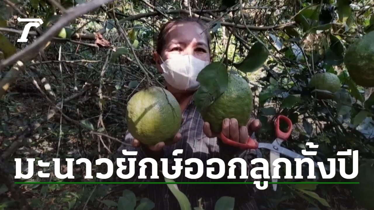 เมื่อวันที่ 25 ก.ย. 2566 ผู้สื่อข่าวรายงานว่า ที่บ้านหลังหนึ่งในพื้นที่ หมู่ 9 ตำบลท่าตูม อำเภอศรีมหาโพธิ จังหวัดปราจีนบุรี เจ้าของบ้านได้ปลูกมะนาวยักษ์ไว้ กินโดยไม่ง้อ มะนาวจากตลาด จากการตรวจสอบ พบ นางลำจวน ม่วงกล่อม อายุ 59 ปี ซึ่งเป็นเจ้าของบ้าน ได้พาผู้สื่อข่าวดูมะนาวยักษ์ต้นที่ปลูกไว้ ที่บริเวณหลังยุ้งข้าวหลังบ้าน โดยปลูกมาประมาณ 2-3 ปีแล้วให้ผลตั้งแต่ยังไม่ถึง 1 ปีแรก แต่ก็ไม่มากเท่าไร แต่พอมาปีที่ 2-3 ก็ออกผลถึง 200-300 ลูก และเก็บลูกกินได้ทั้งปี
