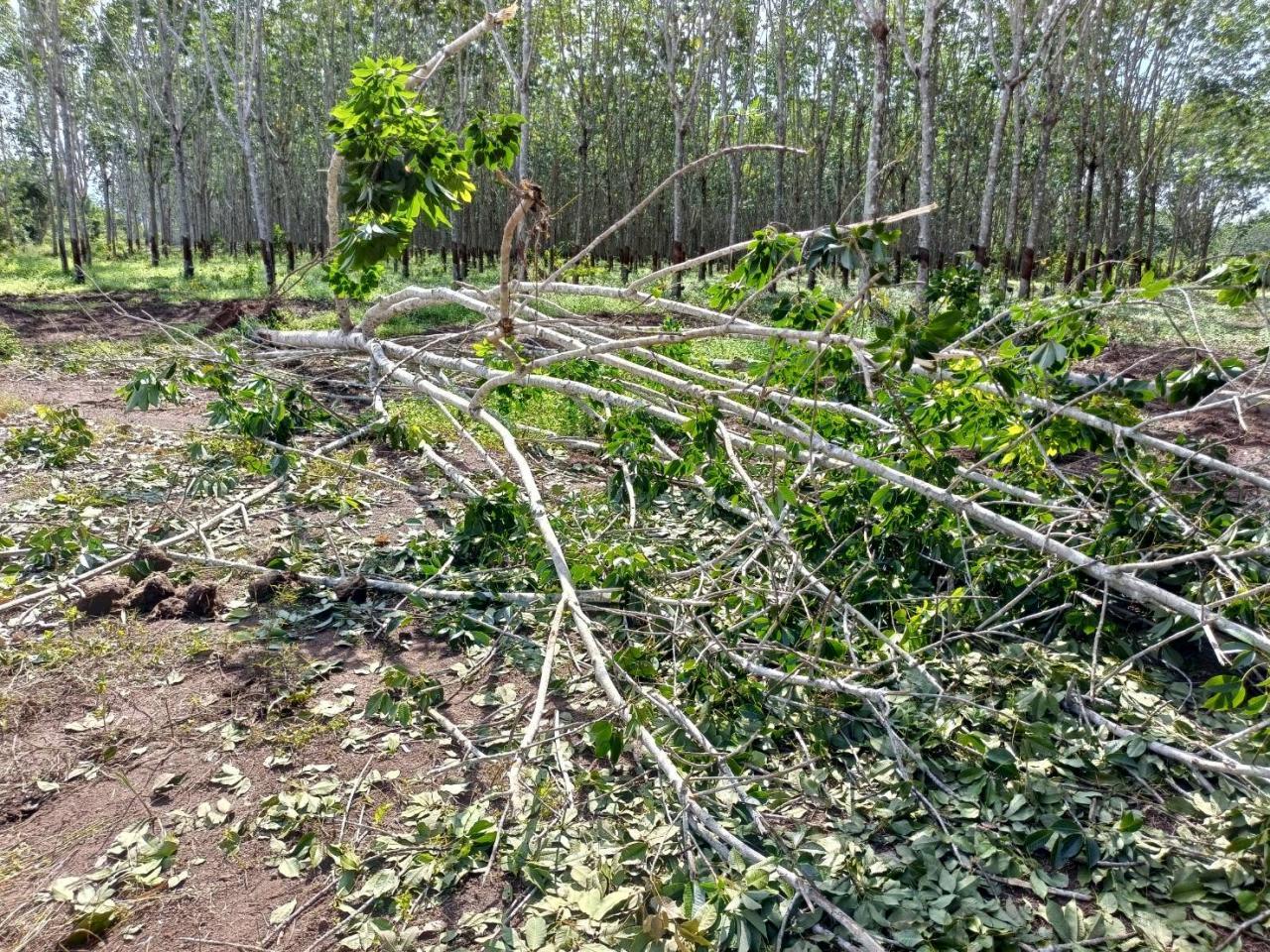 โขลงช้างป่า บุกสวนยางพาราของชาวบ้านที่ อ.ท่าตะเกียบ จ.ฉะเชิงเทรา พบมีพฤติกรรมอาละวาดตกมัน ขย้ำหักโค่นต้นยางพาราหักแปลงละ 4-5 ต้นต่อวัน วอนรัฐฯ เร่งเข้าแก้ไขปัญหาช้างป่าอย่างจริงจัง ชาวบ้านจะช้ำใจมอง ต้นยางพาราเสียหาย ยังไม่ทันได้กรีด