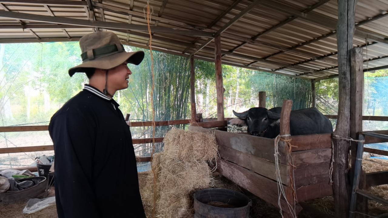 วานนี้ (4 ธ.ค. 66) ตัส ชนะชัย พาผู้สื่อข่าวเดินสำรวจในคอกควาย ที่เลี้ยงสะสมไว้อยู่จำนวน 17 ตัว ณ บ้านสว่าง ต.ภูดิน อ.เมือง จ.กาฬสินธุ์ พร้อมให้สัมภาษณ์ว่า กิจวัตรประจำวันของตนในแต่ละเช้าที่ไม่มีคิวงานขึ้นเวที ตั้งแต่เวลาประมาณ 06.00 น. ก็จะต้อนฝูงควายของตนทั้ง 17 ตัว ออกไปกินหญ้าในกลางป่า ห่างจากคอกไปประมาณ 1 กม. แล้วจะต้อนกลับคอกประมาณ 10.30 น. แต่เมื่อวันที่ 1 ธ.ค. 66 วันที่ควายหัวแก้วหัวแหวนหาย มีสภาพอากาศแดดสลับกับฟ้าสลัว ก็เลยคิดว่าฝูงควายคงจะไม่ร้อน ทำธุระเสร็จจึงไปเอากลับในช่วงเที่ยงวัน ตอนต้อนกลับมาคอกนั้นก็ไม่ได้สังเกตว่าเจ้ามหาเฮง ควายเผือกของตนเองนั้นอยู่ในฝูงหรือเปล่า เพราะไม่ได้ผูกเชือกล่ามไว้ ปล่อยให้กินอิสระ