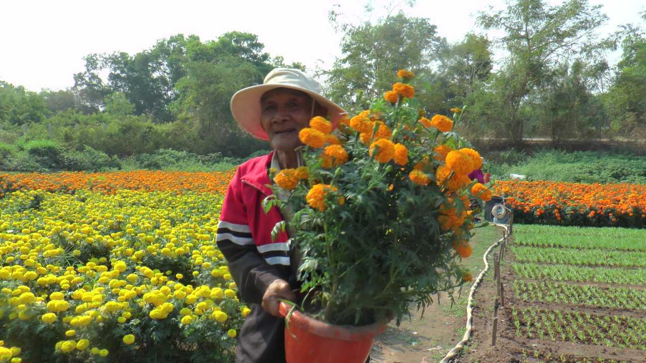 สองตายายชาวไทยเชื้อสายเวียดนาม ที่มีอาชีพทำการเกษตร คือ นายลาน ผ่ามวัน อายุ 74 ปี พร้อมภรรยาคู่ชีวิต นางฮวา เหงียนถิ อายุ 73 ปี ชาวบ้านดอนโมง ต.หนองญาติ อ.เมืองนครพนม ในช่วงนี้ถือเป็นโอกาสทอง ไอเดียเจ๋ง หันมาปลูกดอกดาวเรือง ช่วงปีใหม่ รับเทศกาลตรุษจีน เพื่อส่งขาย มีพ่อค้า แม่ค้า มารับซื้อ ราคาดอกละ 2 - 3 บาท ใช้ระยะเวลาปลูกประมาณ 45 วัน ต้นทุนต่ำ ปลูกไม่ยาก