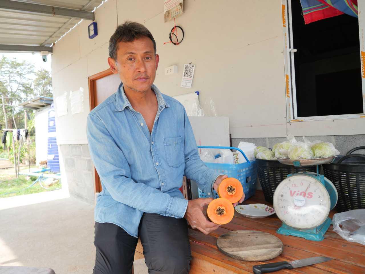นายธีรวุฒิ ชัยพัฒน์ หรือที่เพื่อนๆ เรียกว่า “สจ๊วตเอ๋” วัย 55 ปี อดีตพนักงานต้อนรับบนเครื่องบินของสายการบินไทย ที่หลังจากทำงานที่รัก เดินทางมาแล้วทั่วโลก เวลานี้ทิ้งยูนิฟอร์มกลายเป็นเกษตรกรเต็มตัว กล่าวถึงที่มาที่ไปของการทำเกษตร ว่า พี่เอ๋เรียนจบมหาวิทยาลัยเมื่อปี 2532 ก็เข้าทำงานที่การบินไทยเลย อยู่กับงานต้อนรับผู้โดยสารบนเครื่องบินมากว่า 30 ปี พอมามีสถานการณ์การแพร่ระบาดของโควิด-19 เลยลาออกจากบริษัทฯ มาทำการเกษตรที่บ้านแบบเต็มตัว เริ่มจากการรับซื้อเมล็ดมะรุม มาทำน้ำมะรุมจำหน่าย