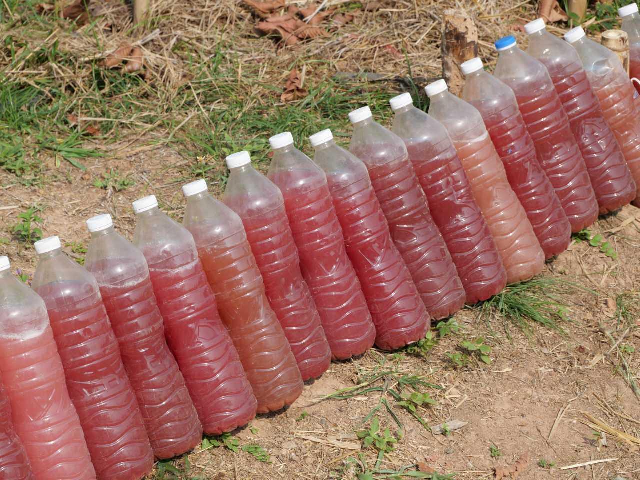 “ตอนแรกตัวเองก็ไม่ได้ปลูกแบบอินทรีย์ ก็เคยใช้สารเคมีมาก่อน แต่พอใช้ไปค่าใช้จ่ายต่างๆ ค่ายาฆ่าแมลงก็ค่อนข้างสูง แล้วพันธุ์ไม้ก็ตายด้วย เพราะมีโรคต่างๆ เข้ามา แรงขึ้นเรื่อยๆ ต้องเปลี่ยนยาไปเรื่อยๆ ทำให้สูญเงินไปจำนวนหนึ่ง ก็เลยกลับมาเน้นพวกเกษตรอินทรีย์ 100% ทำน้ำหมักชีวภาพเอง ทำจุลินทรีย์สีแดงสังเคราะห์แสงเอง น้ำหมักจอมปลวก และน้ำหมักปลา ก็โชคดีมีเพื่อนทำงานอยู่โรงงานน้ำปลาร้าแม่บุญล้ำ ก็สามารถสั่งปลาทะเลทีละ 30-40 กก.มาทำน้ำหมักได้ และไปหาซื้อวัตถุดิบตามร้านขายผลไม้ข้างทาง พวกสับปะรดภูแลมาหมักเพิ่มความหวาน ทีนี้ผลผลิตที่ได้มามันก็ดีเกินคาด สีสวย รสชาติหวานกรอบ ต้นไม้ก็มีความแข็งแรง อีกทั้งเรายังลงทุนเผาถ่านเอง เพื่อเอาน้ำส้มควันไม้มาใช้ฉีดพ่นป้องกันแมลง ทำให้ไร่ฝรั่งของเราเป็นธรรมชาติมาก” นายธีรวุฒิ กล่าว
