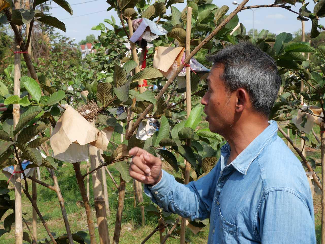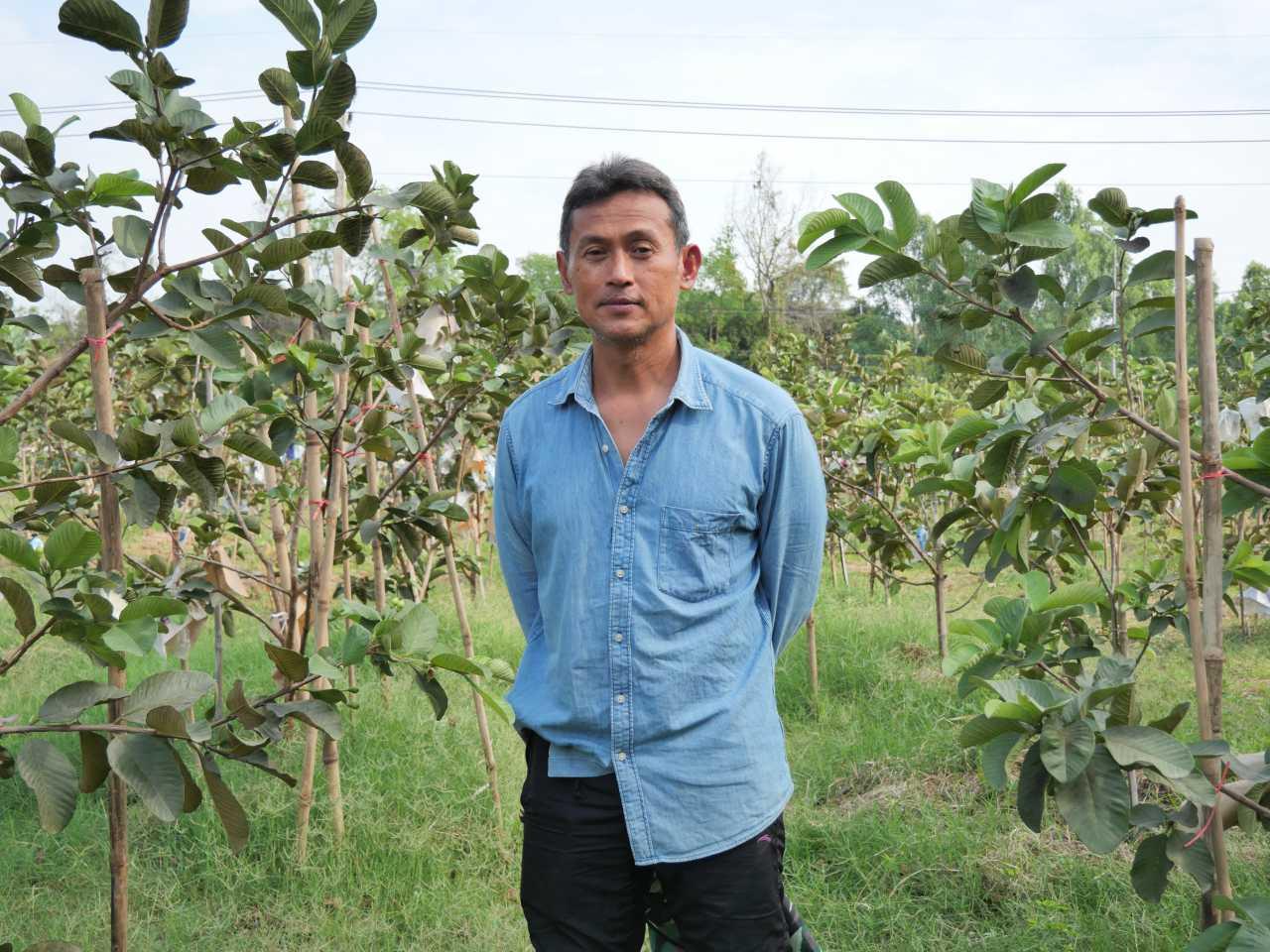 สจ๊วตเอ๋ เจ้าของสวนฝรั่ง กล่าวต่อว่า ที่มารู้จักฝรั่งไต้หวันก็เห็นว่าเป็นพันธุ์ไม้ที่อร่อยแล้วให้มูลค่าค่อนข้างสูง และส่วนมากคนก็ไม่ค่อยปลูกแบบอินทรีย์ ประกอบกับแถวนี้มีมูลวัวเยอะ แล้วก็ได้ความรู้จากการไปเข้าโครงการอบรมของ โคก หนอง นา ก็เจอวิทยากรที่ให้ความรู้เกี่ยวกับพวกจุลินทรีย์ต่างๆ น้ำหมักต่างๆ ก็เลยตัดสินใจไปซื้อต้นฝรั่งจากอัมพวามา จำนวน 500-600 ต้น ราคาต้นละ 85 บาท ได้ต้นพันธุ์ความสูงประมาณ 70-80 ซม. ซึ่งเจ้าของสวนที่ตนซื้อมาได้บอกว่า เมื่อก่อนราคาต้นพันธุ์ต้นละ 500-600 บาทเลยทีเดียว
