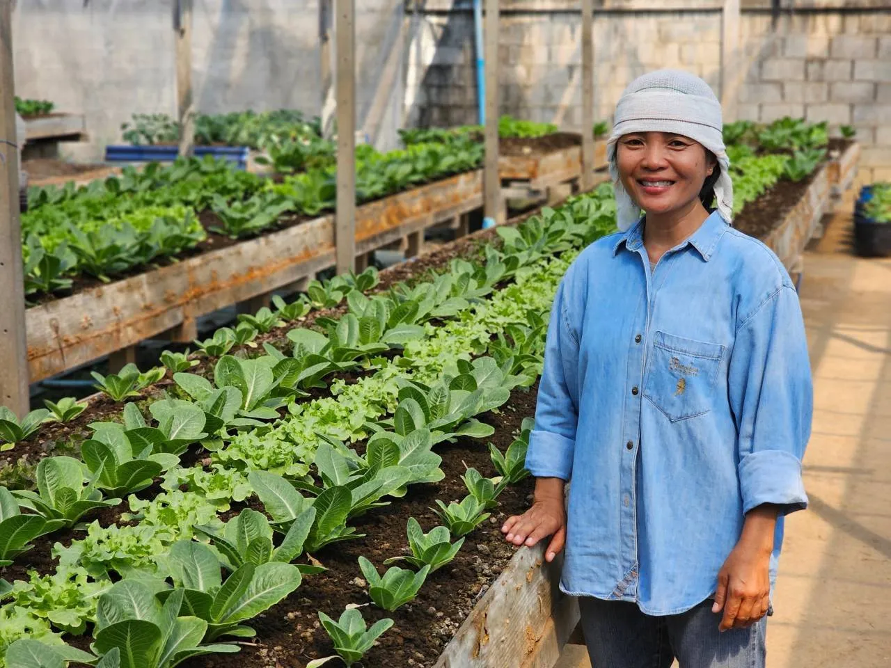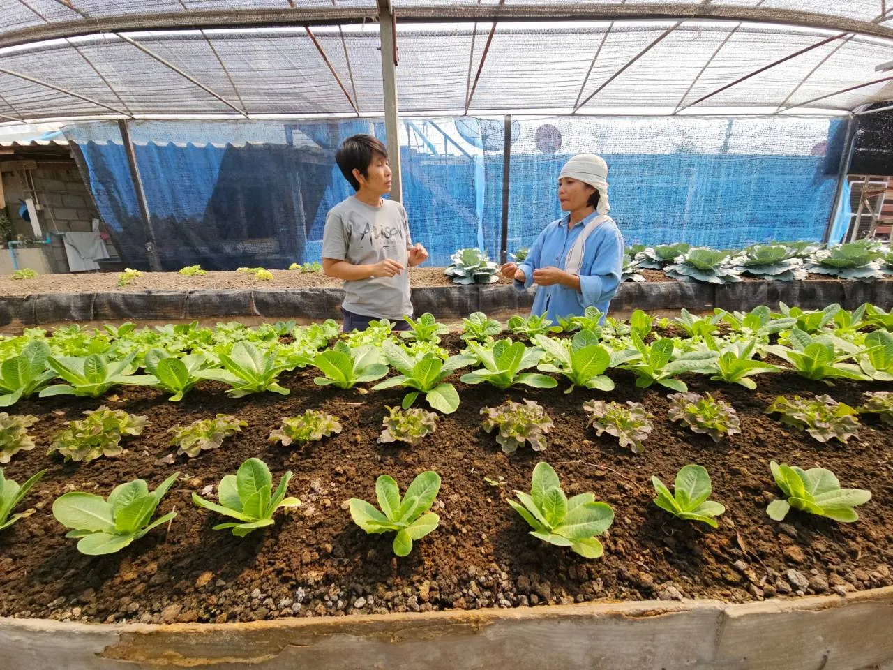 น.ส.มนธิตา เปิดเผยว่า ทำแปลงผักสลัดอินทรีย์ปลูกแบบยกแคร่บนพื้นที่หลังบ้าน ขนาด 80 ตารางเมตร ประกอบด้วย ผักกาดหอมแดง คอส เรดโอ๊ค กรีนโอ๊ค และเคล ส่งจำหน่ายให้กับลูกค้ากลุ่มผู้รักสุขภาพ ในช่วงสัปดาห์ที่ผ่านมา สภาพอากาศในพื้นที่ร้อนเพิ่มขึ้นอย่างต่อเนื่อง ส่งผลทำให้ผักสลัดที่ตามปกติจะเจริญเติบโตได้ดีในสภาพอากาศเย็น ได้รับผลกระทบอย่างชัดเจน คือ ต้นโตช้า แคระแกร็น ใบไหม้ มีแมลงศัตรูพืช ทั้งเพลี้ยไฟและไรแดงเข้าทำลาย ดูดกินน้ำเลี้ยง จนใบผักเสียหาย ทำให้ผลผลิตลดลงไปกว่าร้อยละ 30 กระทบไปถึงรายได้ที่ลดลงตามไปด้วย สวนทางกับต้นทุนด้านการจัดการที่เพิ่มขึ้น ในส่วนของต้นกล้าผักสลัดที่เพาะเอาไว้เตรียมปลูก ก็มีอาการต้นแคระแกร็น ซึ่งจะมีผลต่อการเจริญเติบโตในอนาคต เมื่อนำลงแปลงปลูก