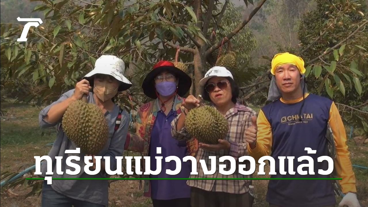 ผู้สื่อข่าวรายงานว่า สวนทุเรียนสายน้ำแร่ บ้านห้วยแก้ว ตำบลดอนเปา อำเภอแม่วาง จังหวัดเชียงใหม่ ของเกษตรกร ที่ปลูกในพื้นที่กว่า 30 ไร่ กำลังออกผลผลิตรุ่นแรกของปีนี้ ทางเจ้าของสวน นำคนงานตัดผลทุเรียน เพื่อคัดเกรด ลูกละไม่เกิน 5 กิโลกรัม นำมาทำความสะอาด ใช้ลมเป่า เศษวัสดุที่ติดตามซอกหนามทุเรียน เพื่อนำไปส่งให้กับล้ง ในจังหวัดจันทบุรี ราคากิโลกรัมละ 200 บาท ลอตแรกประมาณ 500-600 กิโลกรัม เร่งรวบรวมส่งไปขายยังประเทศจีน ซึ่งก็จะมีราคาแพงสูงขึ้นไปอีก
