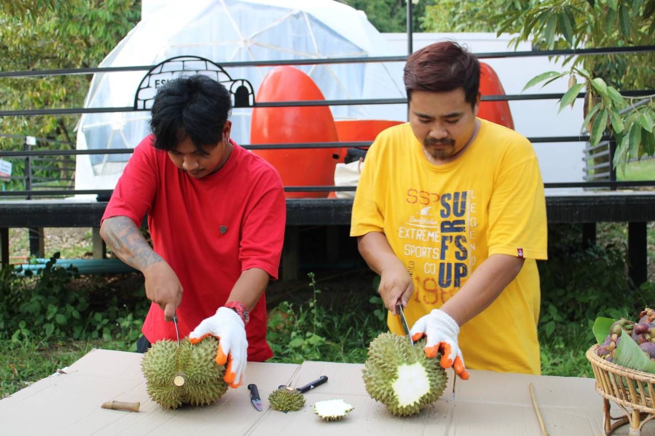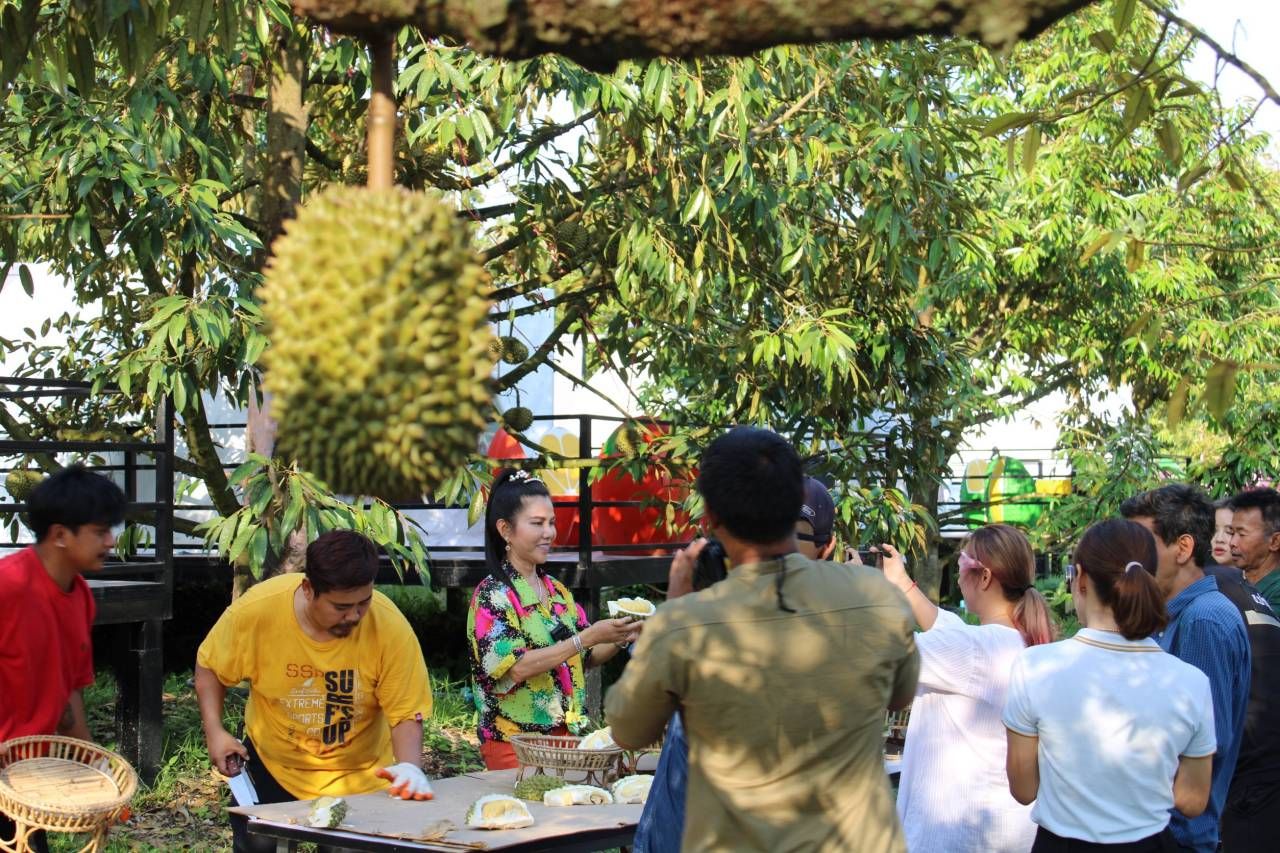 สำหรับไลน์ผลไม้และทุเรียนปีนี้ มีทุเรียนไว้รองรับนักท่องเที่ยวหลากหลายสายพันธุ์ อาทิ หมอนทอง ชะนี ก้านยาว นวลทองจันท์ มูซานคิง หนามดำ นกหยิบ เม็ดในยายปราง กระดุมทอง หลงลับแล เป็นต้น ถึงแม้นักท่องเที่ยวจะไม้ได้พักที่รีสอร์ต ก็สามารถเข้ามาเลือกรับประทานผลไม้ ทุเรียน และถ่ายภาพที่ระลึกภายในรีสอร์ตได้ โดยในรีสอร์ตมีจุดถ่ายภาพเช็กอินสวยงาม สื่อความหมายอัตลักษณ์เสน่ห์เมืองจันท์หลายจุด โดยเฉพาะไฮไลต์เด็ด คือ สกายวอล์ก ที่สามารถเดินชื่นชมสวนทุเรียนและแปลงผักปลอดสารพิษได้อย่างใกล้ชิด