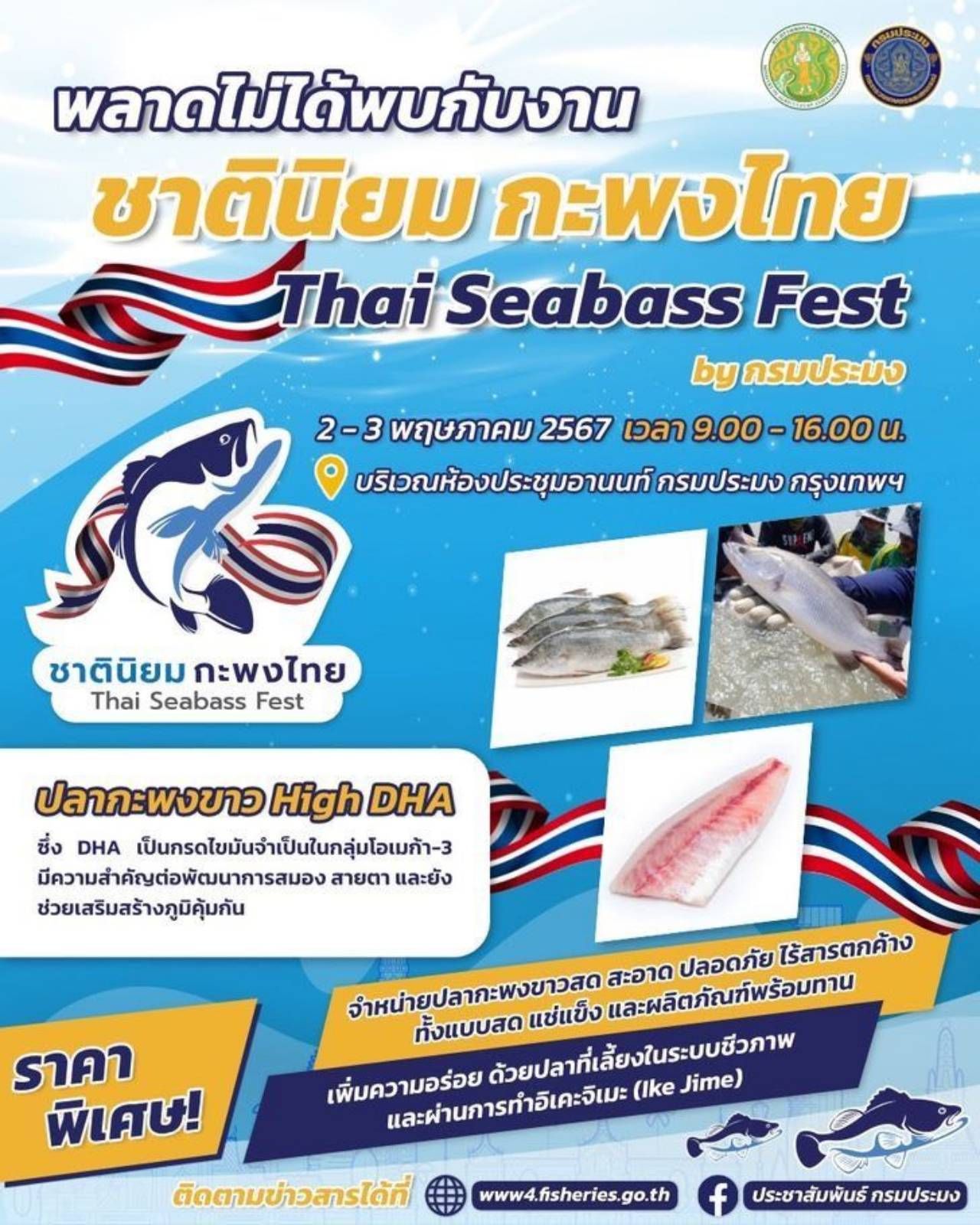 นายบัญชา สุขแก้ว อธิบดีกรมประมง กล่าวว่า จากการที่กระทรวงเกษตรและสหกรณ์ได้ส่งเสริมให้มีการบริโภคปลากะพงขาวในประเทศ เพื่อเป็นการสนับสนุนและเพิ่มรายได้ให้แก่เกษตรกรผู้เลี้ยงปลากะพงขาว ดังนั้น กระทรวงเกษตรและสหกรณ์จึงได้มีนโยบายมอบหมายให้กรมประมงจัดงานโครงการกรมประมงชวนคนไทยร่วมใจบริโภคปลากะพงขาว ภายใต้ธีม “ชาตินิยม กะพงไทย (Thai Seabass Fest)” ระหว่างวันที่ 2-3 พฤษภาคม 2567 ณ ห้องประชุมอานนท์ กรมประมง บางเขน กรุงเทพฯ เพื่อเป็นการกระตุ้นกระแสการบริโภคปลากะพงขาวของไทย ส่งเสริมให้คนไทยได้บริโภคปลากะพงขาว ซึ่งเป็นแหล่งโปรตีนที่ดี มีคุณภาพ สด สะอาด ปลอดภัย ไร้สารตกค้าง และดีต่อสุขภาพ แถมยังส่งตรงจากฟาร์มเกษตรกรถึงมือผู้บริโภค โดยไม่ผ่านพ่อค้าคนกลาง รวมทั้งยังเป็นการเพิ่มช่องทางการตลาดให้กับสินค้าปลากะพงขาว โดยได้รับเกียรติจากร้อยเอก ธรรมนัส พรหมเผ่า รัฐมนตรีว่าการกระทรวงเกษตรและสหกรณ์ เป็นประธานพิธีเปิดงานดังกล่าว