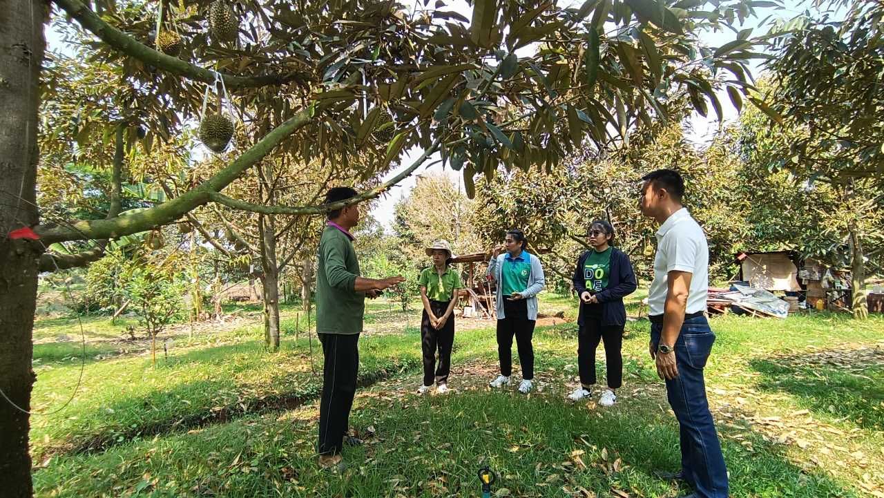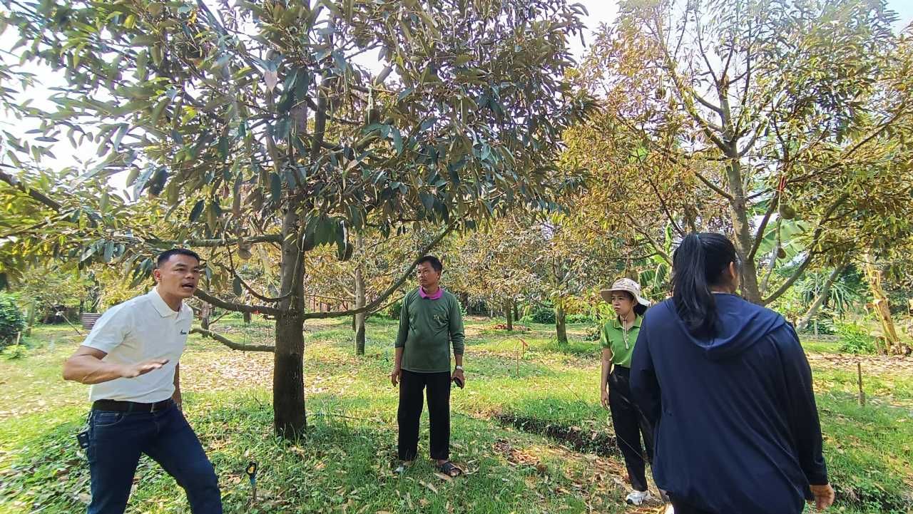 เกษตรกรผู้ปลูกทุเรียนบ้านหนองมะค่า กล่าวต่อว่า แต่ตอนนี้ต้องให้น้ำทุกวัน เพิ่มระยะเวลาการให้น้ำเป็นอย่างน้อยรอบละ 30 นาที โดยจะเน้นให้น้ำในช่วงที่แดดไม่แรงจัดเพื่อให้ต้นทุเรียนมีความชุ่มชื้นมากขึ้น หากวันนี้แดดร้อนจัดอากาศแห้งมากว่าปกติ ก็ต้องเพิ่มระยะเวลาไปอีกตามความเหมาะสม ขณะเดียวกันจากเดิมที่ต้องตัดหญ้าที่อยู่บริเวณโคนต้นเป็นประจำ ตอนนี้ต้องปล่อยเอาไว้เพื่อให้หญ้าควบคุมความชุ่มชื้นบริเวณผืนดินรอบโคนต้นให้มากที่สุด เพื่อให้น้ำที่รดทุเรียนไปคงอยู่สร้างความชุ่มชื่นให้กับโคนทุเรียนให้นานที่สุดเช่นเดียวกัน