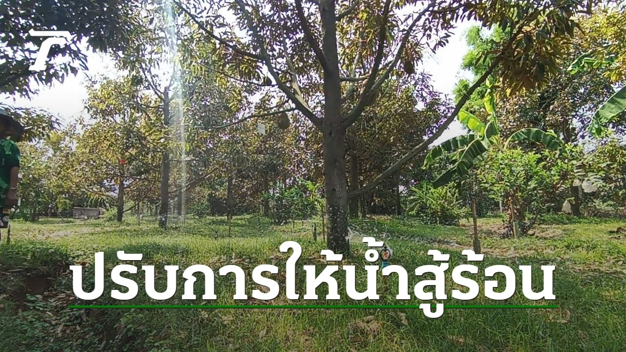 ชาวสวนทุเรียนที่ อ.ครบุรี กว่า 2 พันไร่ ปรับตัวสู้อากาศร้อนกว่า 40 องศาฯ ที่โคราช โดยปรับการให้น้ำทั้งวันป้องกันปัญหาลูกทุเรียนร่วงหล่น โดยจะให้น้ำทุกวันครั้งละ 30 นาทีช่วงแดดไม่แรงจัด