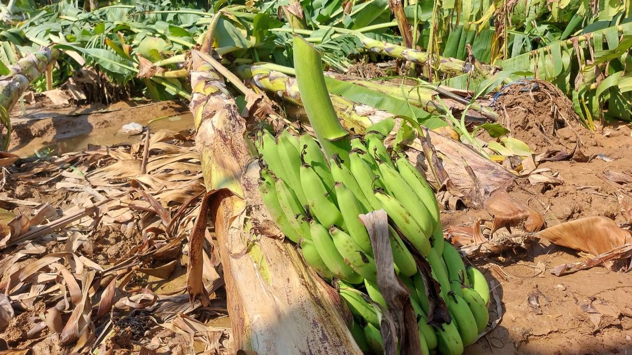 สำหรับพายุถล่มเช่นนี้เกิดขึ้นเป็นครั้งที่สองในรอบปี โดยเมื่อต้นเดือนที่ผ่านมาก็โดนพายุถล่มต้นกล้วยล้มลงกว่า 2 พันต้น หลังโดนถล่มต้นกล้วยเสียหาย ได้ให้แรงงานเอาไม้ค้ำยันต้นไว้ เพื่อป้องกันแรงลม แต่ก็ทัดทานไม่ไหว จนต้นกล้วยล้มระเนระนาดดังที่เห็น