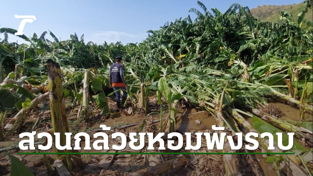 นายนิรุตต์ ชูจิต ผู้ใหญ่บ้าน หมู่ที่ 6 บ้านห้วยแสลงพันธ์ ต.หนองตาแต้ม อ.ปราณบุรี จ.ประจวบคีรีขันธ์ รับแจ้งจากนายไพฑูรย์ สองสี ผู้ช่วยผู้ใหญ่บ้านและเป็นเจ้าของไร่กล้วยหอมทองพื้นที่ปลูก 50 ไร่ ที่บ้านวังวน หมู่ 8 ต.หนองตาแต้ม อ.ปราณบุรี โดยเกิดจากฝนตกหนักและลมแรงจากพายุฤดูร้อนช่วงบ่ายเมื่อวานนี้ ส่งผลให้ผลผลิตต้นกล้วยหอมทองล้มกว่า 8,000 ต้น ซึ่งเป็นผลกล้วยที่มีขนาดพอดี กำลังตัดส่งบริษัทเอกชนที่มีชั้นวางกล้วยในร้านสะดวกซื้อ มีมูลค่าความเสียหายกว่าล้านบาท