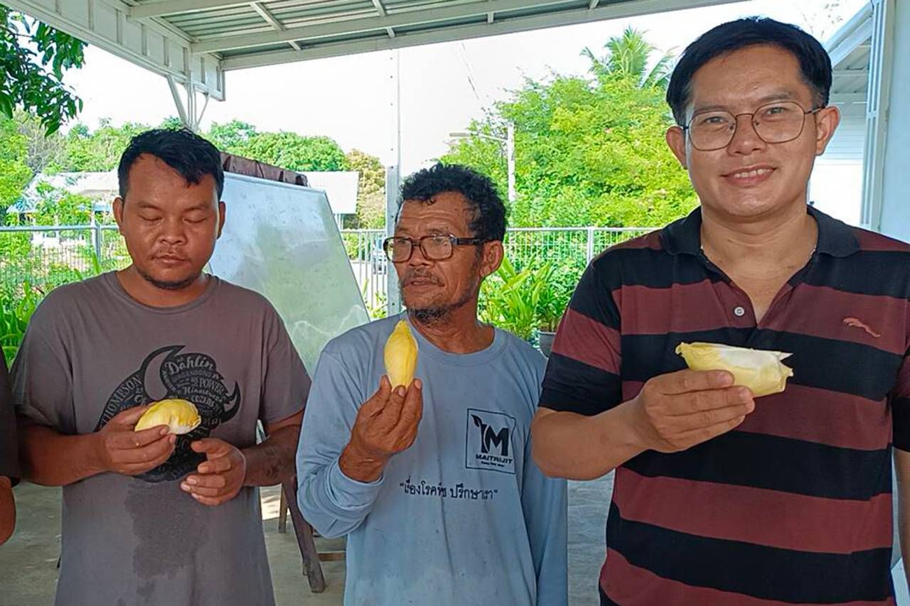 เจ้าของสวนทุเรียน กล่าวต่อว่า ขณะที่วิธีการดูทุเรียนว่าสุกพร้อมจะตัดขายให้กับลูกค้า จะต้องดูทุเรียนที่จะมีหนามแหลมคม ก้านทุเรียนจะเป็นสีน้ำตาล นับจากวันติดลูกขนาดเท่านิ้วมือถึงอายุตัดได้ 120 วัน โดยมีลูกค้าที่รู้จักมาซื้อถึงสวนในกิโลกรัมละ 180 บาท หลายคนบอกว่าหมอนทองแท้เปลือกบางเนื้อเยอะเม็ดลีบ