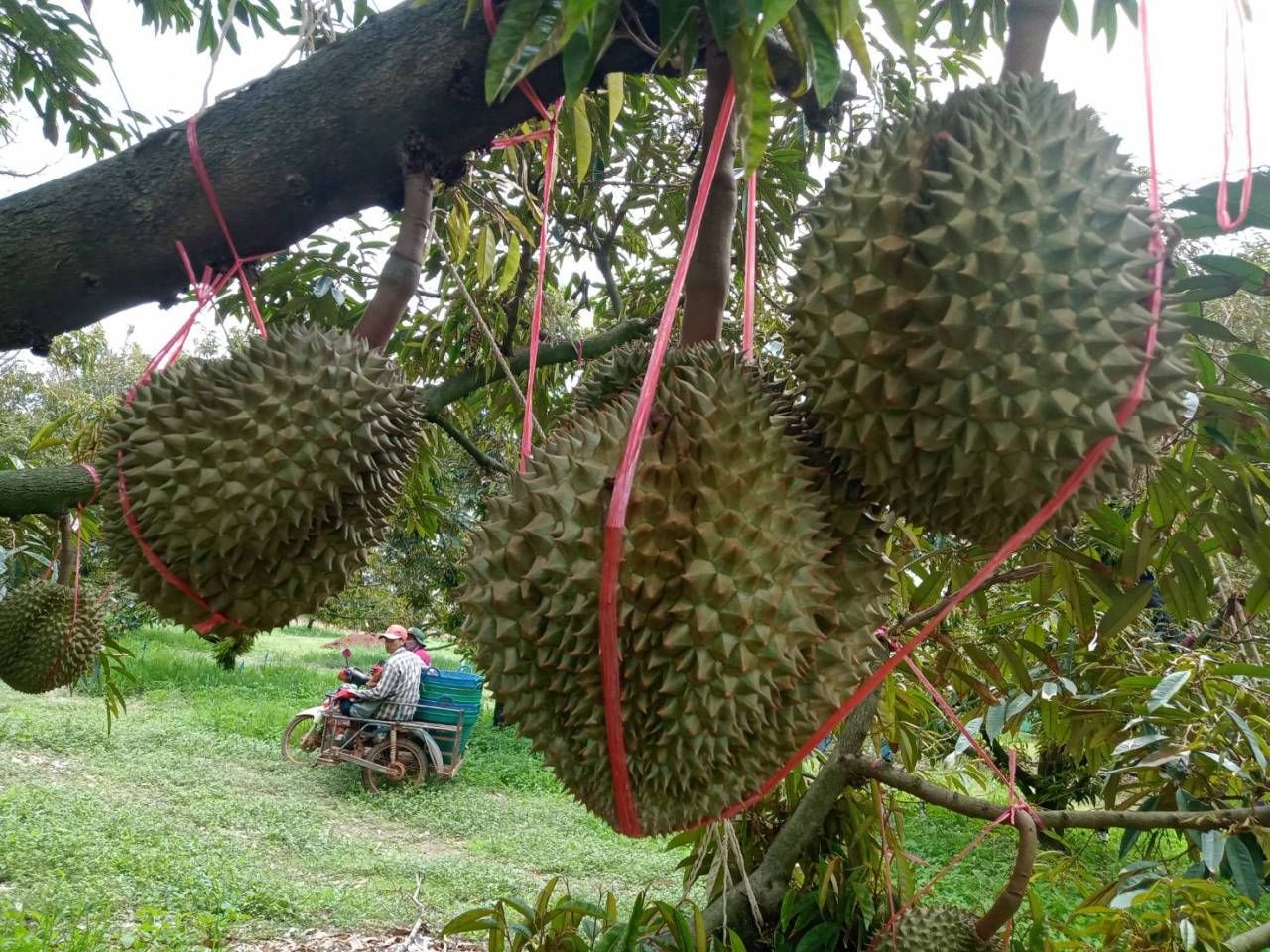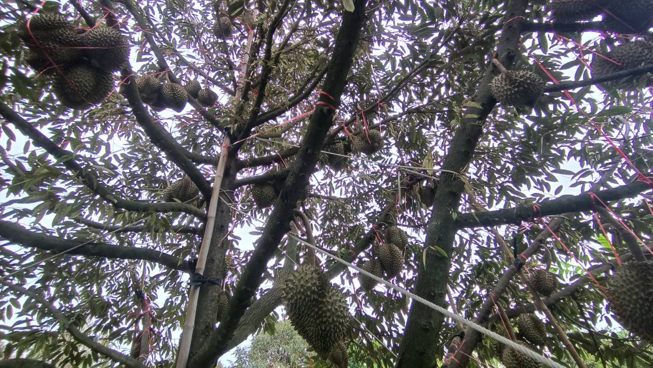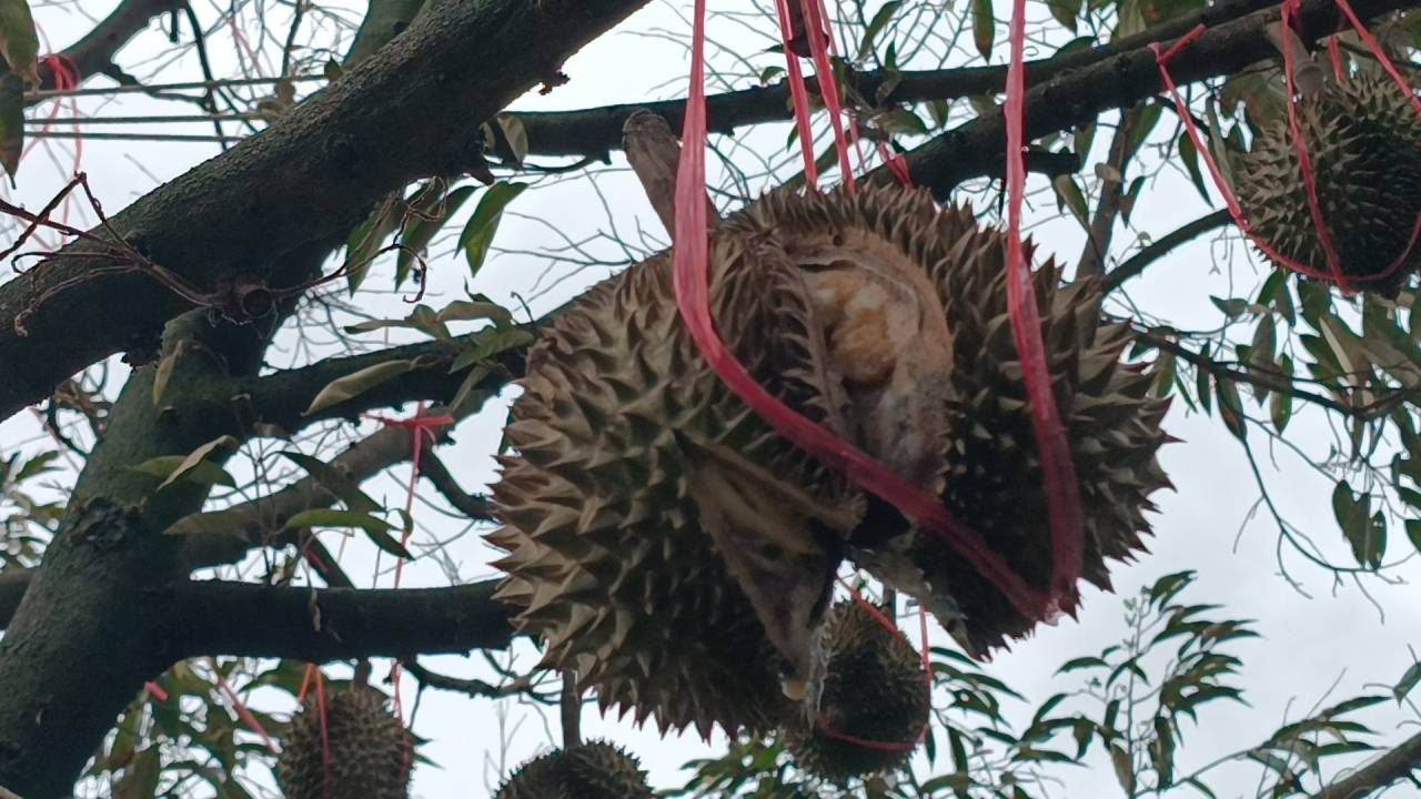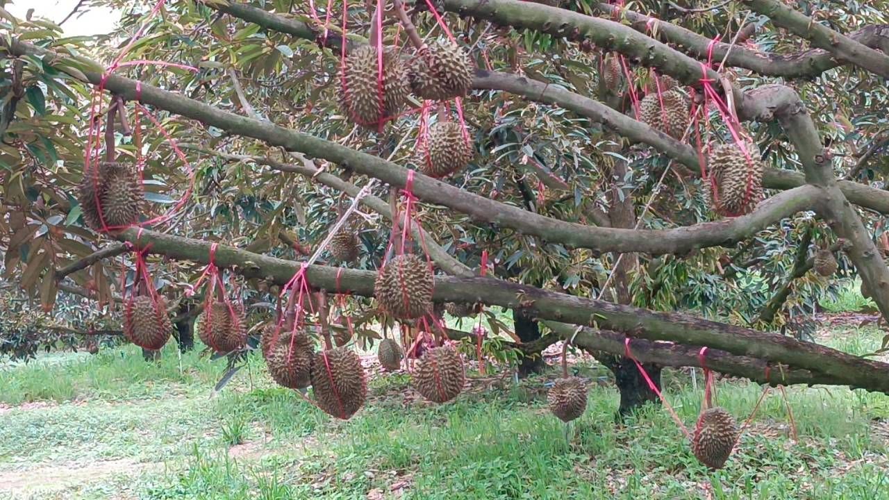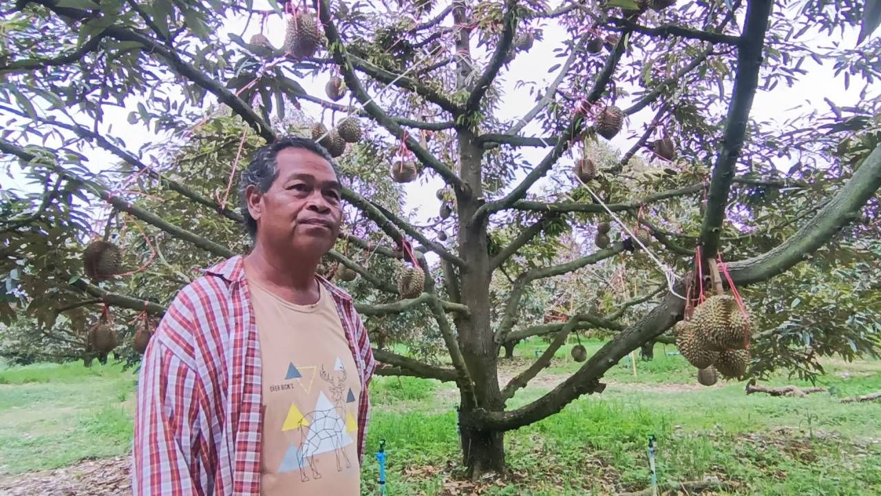 นายวัชรินทร์ ปรนกระโทก หรือลุงตั๊ก กล่าวว่า ปีนี้ทุเรียนที่สวนปลูกเอาไว้รวมแล้ว 35 ไร่ ให้ผลผลิตพร้อมเก็บเกี่ยวปีนี้ประมาณ 10 ไร่ หรือประมาณ 200 ต้น เดิมทีตอนแรกคาดว่าน่าจะได้ผลผลิตประมาณ 13,000-14,000 ลูก แต่ด้วยสภาพอากาศที่ร้อนจัด ประกอบกับการฝืนเร่งเวลาเพื่อให้ทุเรียนให้ผลผลิตที่เร็วขึ้น จึงทำให้เกิดปัญหาลูกทุเรียนแตกและร่วงไปเกือบ 4,000 ลูก แต่ก็ถือว่าได้รับผลกระทบน้อยกว่าหลายๆ เจ้า เพราะที่สวนนั้นมีน้ำพอเพียง และการดูแลควบคุมการติดผลทำได้ดี ไม่หลุดจากที่ตั้งเป้าเอาไว้มากนัก