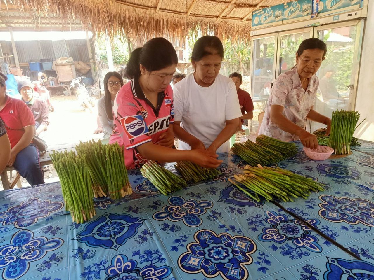 เมื่อวันที่ 15 มิ.ย. 67 นางสาวปิยะมาศ แสนสุนนท์ ประธานแปลงใหญ่ปลูกหน่อไม้ฝรั่ง วิสาหกิจชุมชนกลุ่มปลูกหน่อไม้ฝรั่งตามแนวเศรษฐกิจพอเพียง หมู่ที่ 8 ตำบลวังสวาบ อำเภอภูผาม่าน จังหวัดขอนแก่น กล่าวว่า ได้รวมกลุ่มปลูกหน่อไม้ฝรั่งในพื้นที่ตำบลวังสวาบ โดยจัดตั้งเป็นวิสาหกิจชุมชนกลุ่มปลูกหน่อไม้ฝรั่งตามแนวเศรษฐกิจพอเพียง บ้านฝายตาสวน มาตั้งแต่ปี 2558 แต่ล้มลุกคลุกคลานมาตลอด ทั้งประสบปัญหาภัยแล้ง น้ำท่วม หนักที่สุดช่วงโควิด กระทั่งในปี 2566 กรมส่งเสริมการเกษตรเข้ามาส่งเสริมและสนับสนุนให้เข้าร่วมโครงการระบบส่งเสริมเกษตรแบบแปลงใหญ่ ทางกลุ่มจึงได้กลับมาฟื้นฟูการดำเนินงานใหม่อีกครั้ง โดยเริ่มจากเปิดรับสมัครเกษตรกรที่ปลูกหน่อไม้ฝรั่งในพื้นที่เข้าร่วมและจัดตั้งกลุ่มในนาม “แปลงใหญ่ปลูกหน่อไม้ฝรั่ง วิสาหกิจชุมชนกลุ่มปลูกหน่อไม้ฝรั่งตามแนวเศรษฐกิจพอเพียง” และมีการระดมทุนจากค่าสมัครสมาชิกรายละ 100 บาท สำหรับเป็นค่าบริหารจัดการเบื้องต้น เริ่มจากสมาชิก 13 ราย พื้นที่ปลูก 13 ไร่ และปัจจุบันได้ขยายมาเป็น 30 ราย พื้นที่ปลูก 34 ไร่ ผลผลิตเฉลี่ย 75 ตัน/ปี รายได้เฉลี่ย 4,500,000 บาท/ปี