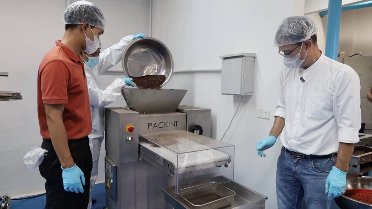 ผู้สื่อข่าวรายงานในวันนี้ (18 มิ.ย. 67) ว่า นายสรวิศ จันทร์แท่น นักธุรกิจชื่อดังของ จ.นครศรีธรรมราช ได้เปิดโรงงานแปรรูปโกโก้ ใช้ชื่อบริษัท ไทยบุรี โกโก้ จำกัด เป็นโรงงานผลิตและพัฒนาโกโก้ในประเทศไทยสู่ระดับภูมิภาค โดยโรงงานนี้ถือว่าเป็นโรงงานแห่งแรกของประเทศไทย ซึ่งภายในโรงงานได้ใช้เครื่องผลิตโกโก้ ทั้งบดหยาบ บดละเอียด และแปรรูป โดยคนงานต้องแต่งกายอย่างรัดกุมเพื่อให้ถูกสุขลักษณะ