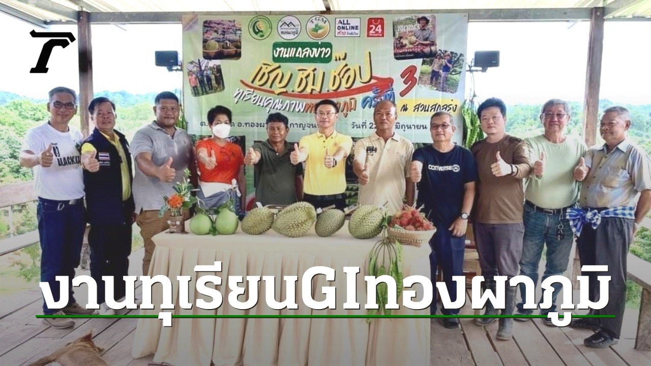 สำหรับ ทุเรียนทองผาภูมิ คือ ทุเรียน GI ของ จ.กาญจนบุรี ล่าสุดที่ กรมทรัพย์สินทางปัญญา กระทรวงพาณิชย์ ประกาศรับรอง "ทุเรียนทองผาภูมิ" เป็นทุเรียนพันธุ์หมอนทองที่ปลูกในพื้นที่แนวเทือกเขาตะนาวศรี ซึ่งมีลำน้ำสำคัญมากมาย มีสภาพอากาศกลางวันร้อน กลางคืนเย็น ทำให้ลักษณะดินบริเวณนั้นเป็นดินศิลาแลง เนื้อดินร่วนปนทราย สามารถระบายน้ำได้ง่าย ทำให้รากทุเรียนสามารถชอนไชหาอาหารได้ดี และได้รับสารอาหารจากดินเต็มที่ ด้วยแหล่งภูมิศาสตร์นี้ทำให้ทุเรียนทองผาภูมิเติบโตได้ดี มีอัตลักษณ์ชัดเจน ผลทรงรีสวย เปลือกบาง รสชาติหวานมัน เนื้อหนาสีครีมเหลือง ผิวมันวาว กรอบ เส้นใยน้อยและไม่มีกลิ่นฉุน ปัจจุบันสามารถสร้างรายได้ให้แก่ จ.กาญจนบุรี และเกษตรกรในพื้นที่ได้อย่างยั่งยืน.