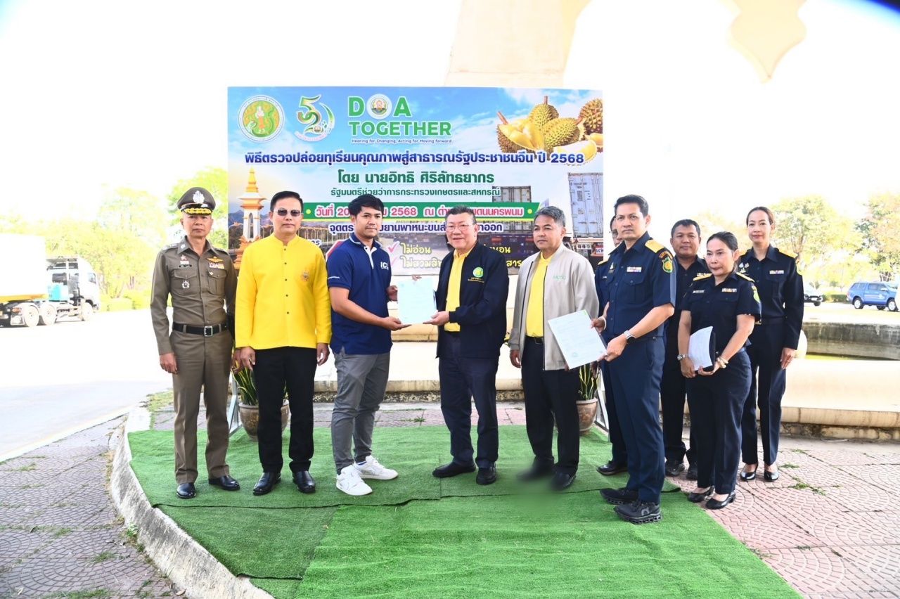 ปลดล็อกทุเรียนไทย "รมช.อิทธิ" ประเดิมปล่อยทุเรียนคุณภาพล็อตแรกไปจีน ณ ด่านพรมแดนนครพนม ย้ำ ยึดหลักมาตรการ "4 ไม่" พบฝ่าฝืนสั่งปิด-ดำเนินคดีทันที