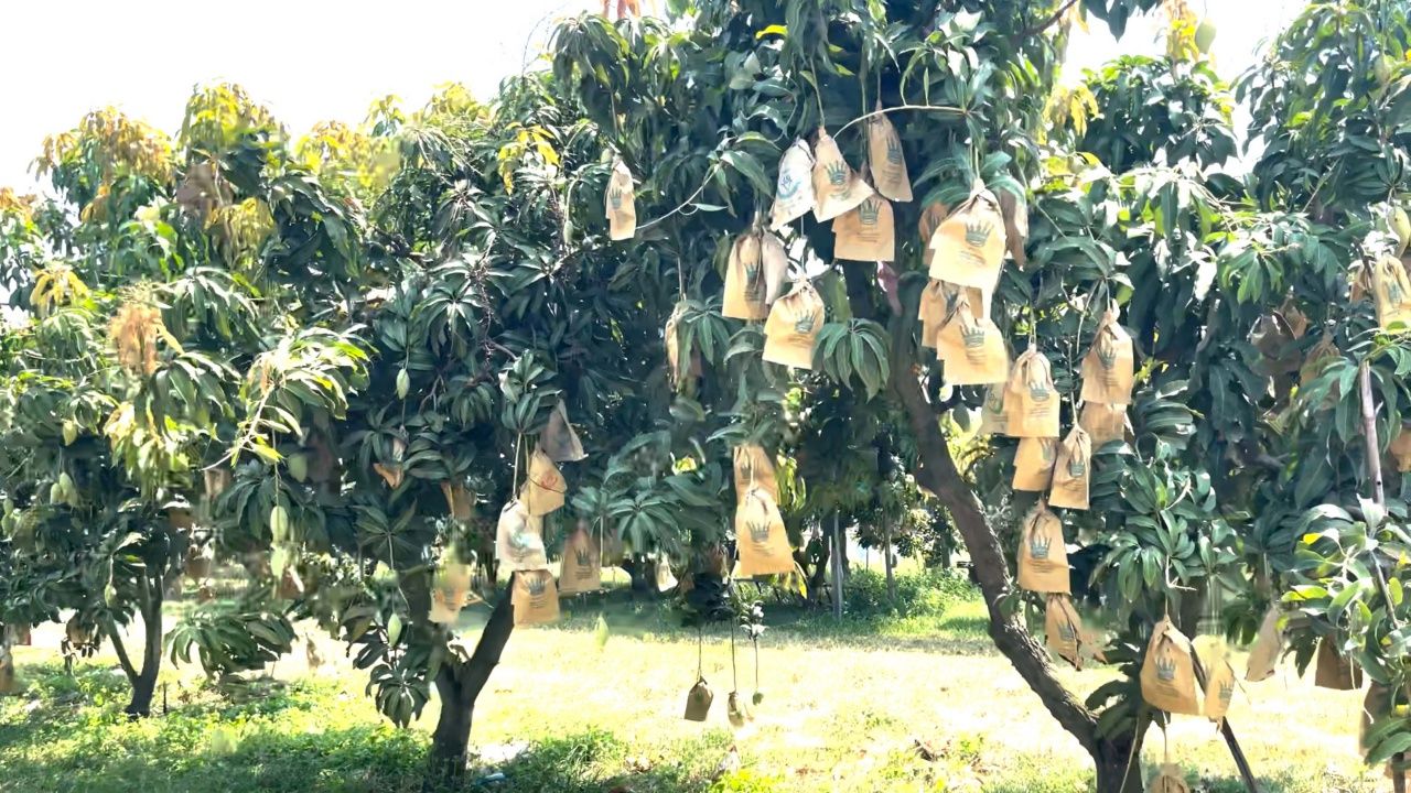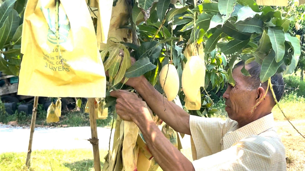 เมื่อเวลา 10.00 น.วันที่ 10 เมษายน 2569 ผู้สื่อข่าวลงพื้นที่ไปยังมะม่วงพันธุ์น้ำดอกไม้สีทองที่ถูกห่อหุ้มด้วยถุงกระดาษอย่างดี เป็นผลผลิตมะม่วงภายในไร่ของ นายสุธีย์ ทินราช ประธานกลุ่มวิสาหกิจชุมชนมะม่วงบ้านแฮดเพื่อการส่งออก อ.บ้านแฮด จ.ขอนแก่น ซึ่งนับจากวันนี้ไปอีกประมาณ 40 วัน ก็พร้อมที่จะเก็บผลผลิต เพื่อนำไปคัดแยกส่งขาย ทั้งในประเทศและต่างประเทศ