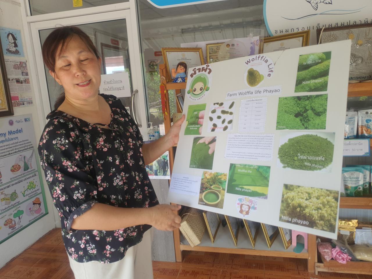 ผู้สื่อข่าวรายงานว่า นางปิยฉัตร คำวัง อายุ 49 ปี ประธานกลุ่มแปรรูปวิสาหกิจชุมชนบ้านโป่งเกลือ เลขที่ 40/1 หมู่ 9 ตำบลแม่ปืม อำเภอเมือง จังหวัดพะเยา เป็นคนแรกของจังหวัดที่ได้นำเอาผำ หรือไข่น้ำ มาเพาะเลี้ยงโดยใช้พื้นที่ว่างภายในบ้าน โดยใช้บ่อซีเมนต์ เพาะเลี้ยง “ไข่ผำ” พืชน้ำพื้นบ้านแบบอินทรีย์ โดยการใช้น้ำซาวข้าวในการเลี้ยง จำหน่ายทั้งแปรรูป และสด