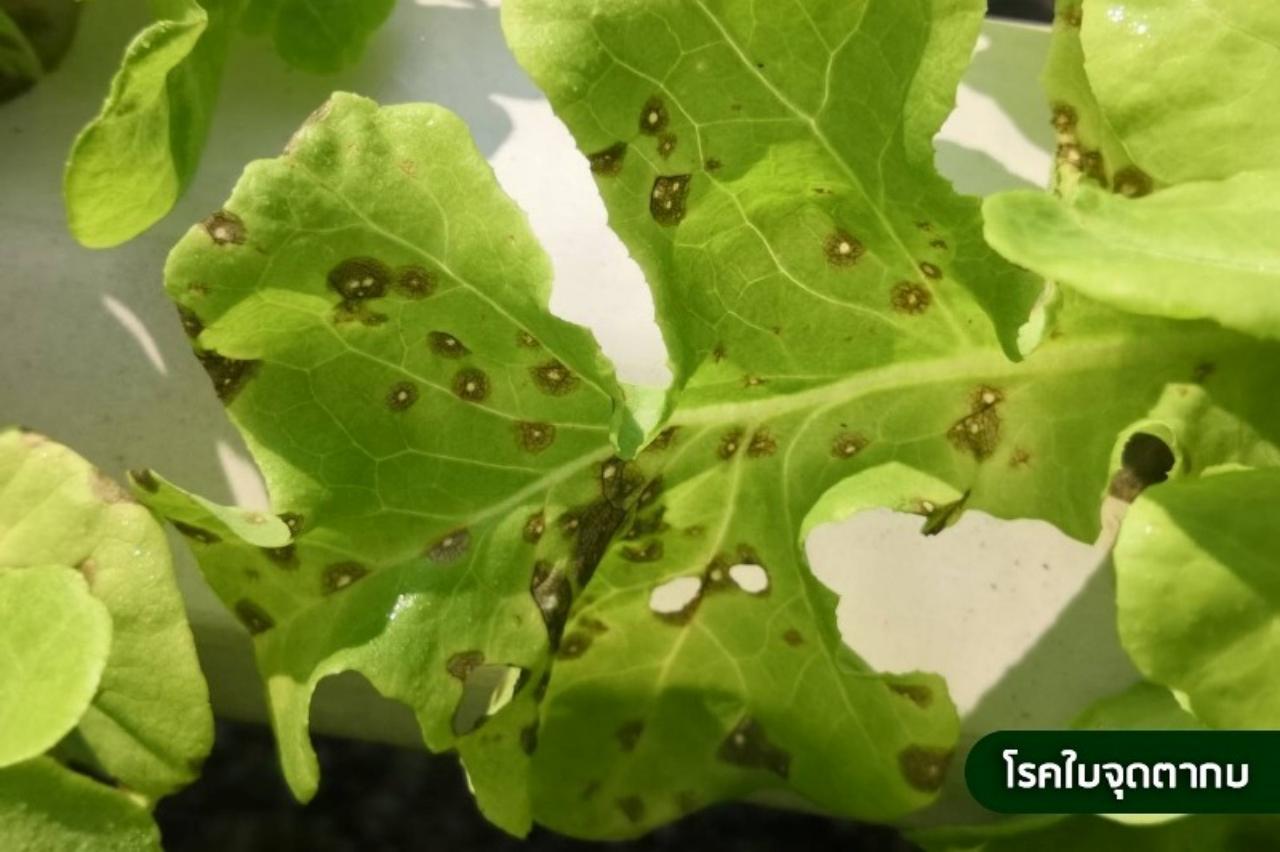 สำนักควบคุมพืชและวัสดุการเกษตร แจ้งเตือนให้เกษตรกรปลูกผักเฝ้าระวัง โรคใบจุด หรือ ใบจุดตากบ สาเหตุจากเชื้อรา Cercospora lactucae-sativae ทำลายผลผลิตผักสลัดทุกระยะการเจริญเติบโต โดยเฉพาะผักที่มีใบกว้าง เช่น กรีนคอส บัตเตอร์เฮด โดยเริ่มแรกแผลมีลักษณะเป็นจุดฉ่ำน้ำ สีน้ำตาลอ่อน ต่อมาแผลขยายใหญ่มีลักษณะกลมหรือค่อนข้างกลม เรียงซ้อนกันเป็นชั้น กลางแผลมีสีเทาหรือสีขาว ขอบแผลมีสีน้ำตาล ลักษณะคล้ายตากบ แผลมีหลายขนาดตั้งแต่จุดเล็กถึงจุดใหญ่ ขนาด 1-10 มิลลิเมตร เกิดกระจายทั่วใบ ถ้าอาการรุนแรงแผลจะลามขยายติดกันทำให้ใบไหม้ หากเกิดกับใบอ่อนอาจทำให้เกิดอาการใบหงิกงอ