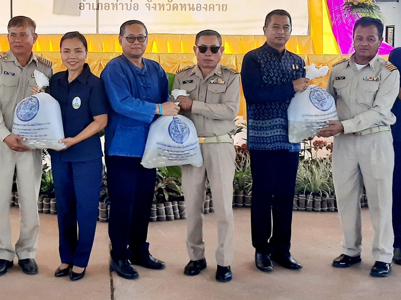 ในโอกาสนี้ยังได้มอบพันธุ์ปลาน้ำจืดให้แก่กำนัน ผู้ใหญ่บ้าน เพื่อนำไปปล่อยในหนองน้ำสาธารณะตามหมู่บ้านชุมชนของตนเอง โดยมี นายนวน โทบุตร นายอำเภอท่าบ่อ พร้อมหัวหน้าส่วนราชการระดับจังหวัด/อำเภอ องค์กรปกครองส่วนท้องถิ่น กำนัน ผู้ใหญ่บ้าน และประชาชนในพื้นที่ร่วมพิธีเปิดโครงการฯ