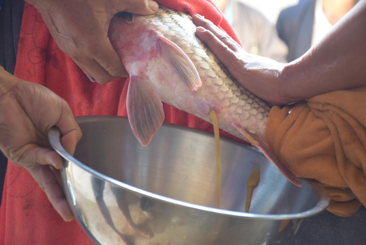 รองอธิบดีกรมประมง กล่าวถึงกระบวนการผสมเทียมว่า ทางศูนย์ฯ จะนำน้ำเชื้อตัวผู้แช่แข็งที่เก็บรักษาไว้ในไนโตรเจนเหลว อุณหภูมิ-196 องศาเซลเซียส ที่อยู่ในธนาคารน้ำเชื้อ (sperm bank) มาผสมพันธุ์กับไข่ของแม่พันธุ์ปลา ด้วยชุดเพาะฟักเคลื่อนที่เป็นโรงเพาะฟักไข่ปลาเคลื่อนที่ขนาดเล็ก (Mobile Hatchery) จากนั้นจึงแบ่งลูกปลาออกเป็น 2 ส่วน โดยส่วนแรกปล่อยคืนกลับลงสู่แม่น้ำโขง เพื่อคงความหลากหลายทางพันธุกรรมให้คงอยู่อย่างยั่งยืน อีกส่วนหนึ่งจะนำกลับไปอนุบาลที่ศูนย์วิจัยของกรมประมงเพื่อสร้างพ่อแม่พันธุ์ประชากรยี่สกที่คงความหลากหลายทางพันธุกรรมไว้ให้มากที่สุด และนำลูกปลาที่เหลือไปใช้ในกิจกรรมอื่นๆ ต่อไป