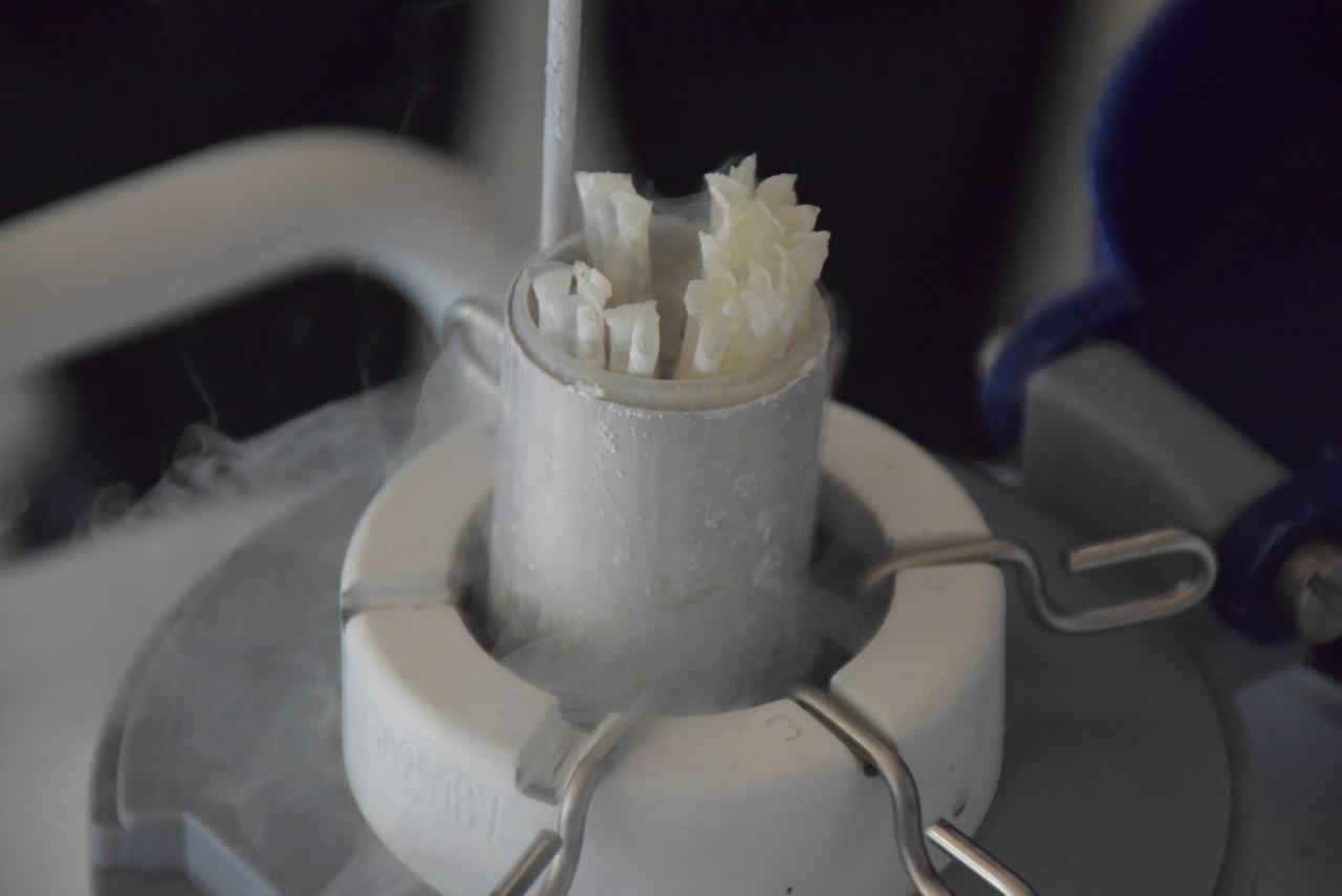 และเมื่อเดือนกรกฎาคม 2566 ที่ผ่านมา กรมประมงยังได้รับการสนับสนุนชุดเครื่องมือและอุปกรณ์สำหรับเก็บรักษาน้ำเชื้อสัตว์น้ำแช่แข็ง จากศูนย์พัฒนาการประมงแห่งเอเชียตะวันออกเฉียงใต้ (SEAFDEC) อีกจำนวน 2 ชุด โดยได้ดำเนินการติดตั้งไว้ที่ศูนย์วิจัยและพัฒนาการเพาะเลี้ยงสัตว์น้ำจืดเชียงใหม่ (ศพจ.เชียงใหม่) และศูนย์วิจัยและพัฒนาการเพาะเลี้ยงสัตว์น้ำจืดมุกดาหาร (ศพจ.มุกดาหาร) ซึ่งทั้ง 2 แห่ง ถือเป็นศูนย์กลางของหน่วยงานการเพาะสัตว์น้ำของกรมประมงในภาคเหนือและภาคตะวันออกเฉียงเหนือ ดังนั้น ในกรณีที่แม่ปลามีไข่แก่พร้อมผสมพันธุ์ แต่ขาดน้ำเชื้อนั้นก็จะสามารถนำน้ำเชื้อจากธนาคารเชื้อพันธุ์นั้นมาใช้ผสมเทียมได้ทันที