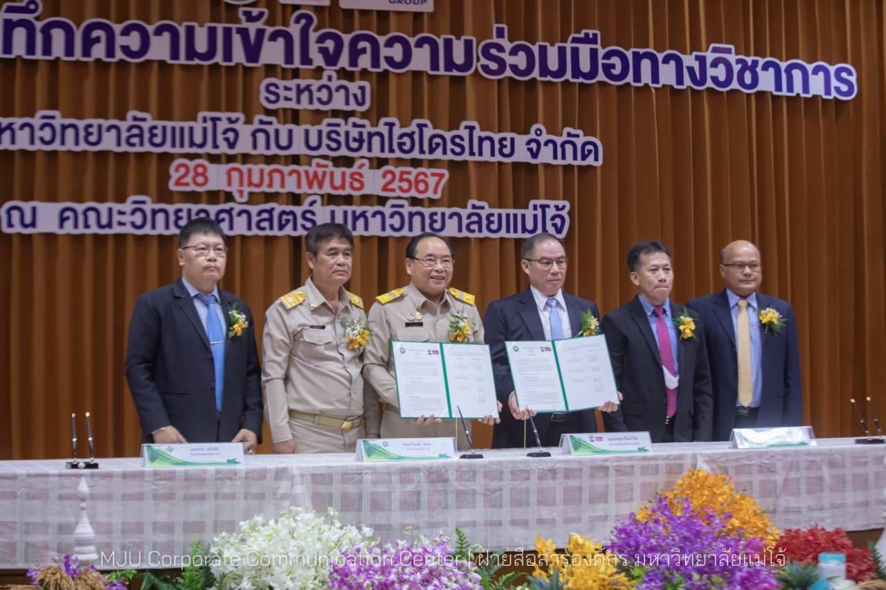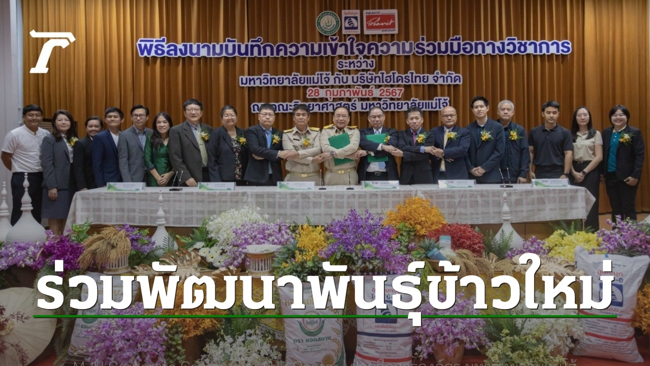 ผู้สื่อข่าวรายงานว่า มหาวิทยาลัยแม่โจ้ เชียงใหม่ โดยหน่วยความเป็นเลิศด้านการปรับปรุงพันธุ์ข้าว คณะวิทยาศาสตร์ มหาวิทยาลัยแม่โจ้ ร่วมกับ บริษัท ไฮโดรไทย จำกัด ผู้ดําเนินธุรกิจปุ๋ยสูตรพิเศษตามความต้องการของเกษตรกร ภายใต้เครื่องหมายการค้า ปุ๋ยไข่มุก ตราเรือใบไข่มุก มีพิธีลงนามบันทึกความเข้าใจความร่วมมือทางวิชาการโครงการแปลงสาธิตพันธุ์ข้าว โดยมี รองศาสตราจารย์ ดร.วีระพล ทองมา รักษาการแทนอธิการบดีมหาวิทยาลัยแม่โจ้ และ นายไพฑูรย์ ติโลกวิชัย ประธานเจ้าหน้าที่ฝ่ายการตลาด บริษัท ไฮโดรไทย จำกัด เป็นผู้แทนลงนามทั้งสองฝ่าย ผู้บริหารและหัวหน้าส่วนงานที่เกี่ยวข้องของทั้งสองหน่วยงานร่วมเป็นสักขีพยาน ณ ห้องเอกภพวิทยา อาคารจุฬาภรณ์ คณะวิทยาศาสตร์ มหาวิทยาลัยแม่โจ้