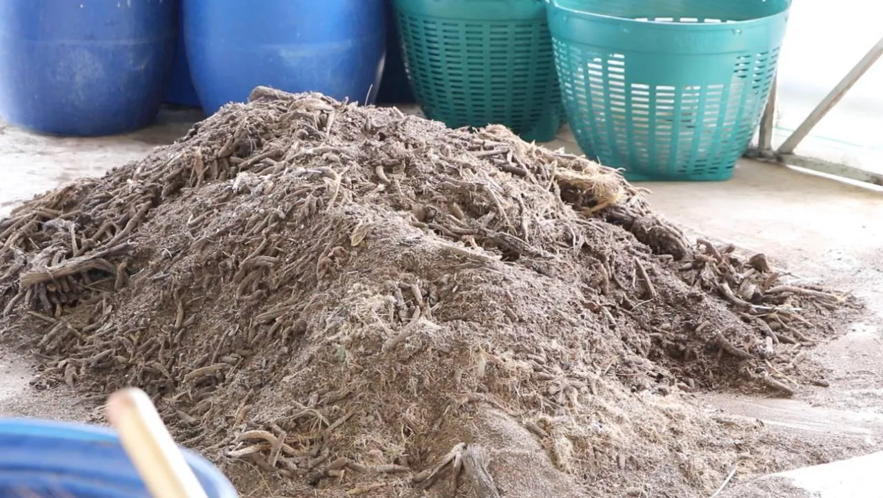 ผู้สื่อข่าวรายงานว่า ช่อดอกเกสรตัวผู้ของต้นปาล์มน้ำมัน ที่เป็นของเหลือจากต้นปาล์ม เมื่อถูกนำมาแช่น้ำเป็นเวลา 7 คืน โดยมีการเปลี่ยนน้ำทุกวัน ก่อนจะนำหมักในถังพลาสติก หรือกระสอบ เป็นเวลาอย่างน้อย 1 เดือน จนช่อดอกเปื่อยยุ่ย ขาดง่าย จากนั้นนำมาผึ่งลมให้พอหมาด นำไปตีป่น แล้วนำไปผึ่งลมจนแห้ง และบรรจุใส่ถุงที่เตรียมไว้ พร้อมนำไปจำหน่ายเป็นวัสดุเพาะเมล็ด ที่มีคุณสมบัติเหมือนพีทมอส ที่นำเข้าจากต่างประเทศ