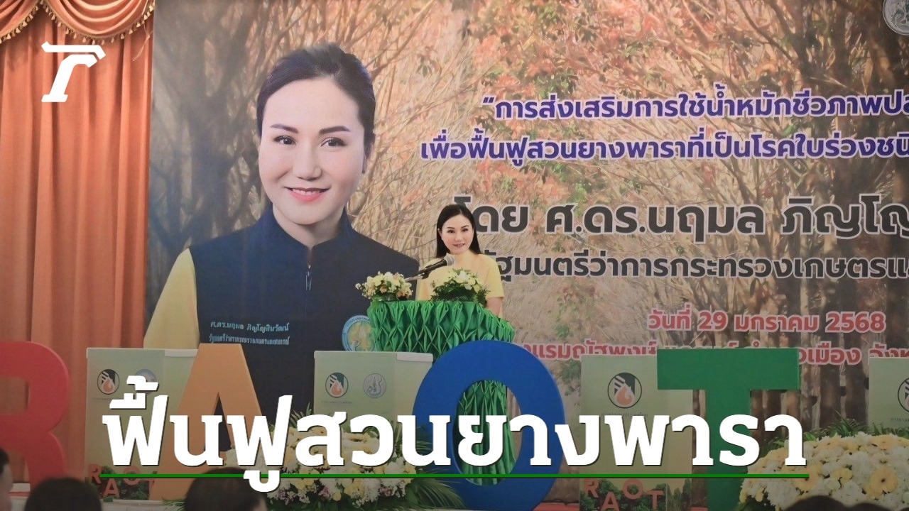 "รมว.นฤมล" หนุนใช้น้ำหมักชีวภาพปลาหมอคางดำ สู้ศึกโรคใบร่วงในยางพารา ตั้งเป้าฟื้นฟูสวนยางควบคู่การลดปริมาณปลาหมอคางดำ