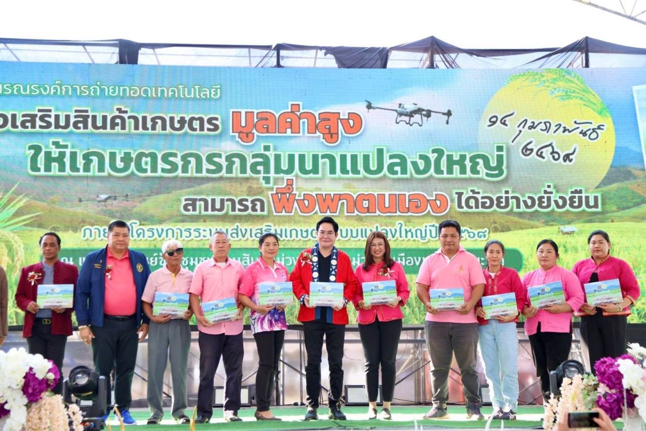 วันที่ 14 ก.พ. 68 นายอัครา พรหมเผ่า รัฐมนตรีช่วยว่าการกระทรวงเกษตรและสหกรณ์ เป็นประธานพิธีเปิดงานรณรงค์การถ่ายทอดเทคโนโลยีเพื่อเพิ่มศักยภาพการผลิตข้าวสู่สินค้าเกษตรมูลค่าสูง ภายใต้โครงการระบบส่งเสริมเกษตรแบบแปลงใหญ่ ปี 2568 โดยมีนายธนสาร ธรรมสอน ผู้ช่วยเลขานุการรัฐมนตรีว่าการกระทรวงเกษตรและสหกรณ์ นางอัญชลี สุวจิตตานนท์ รองปลัดกระทรวงเกษตรและสหกรณ์ นายณัฏฐกิตติ์ ของทิพย์ อธิบดีกรมการข้าว นายรัฐพล นราดิศร ผู้ว่าราชการจังหวัดพะเยา ผู้บริหารกระทรวงเกษตรและสหกรณ์ ตลอดจนเกษตรกรกลุ่มนาแปลงใหญ่ ศูนย์ข้าวชุมชน เกษตรกรทั่วไป และประชาชน เข้าร่วม ณ แปลงนาศูนย์ข้าวชุมชนบ้านสันป่าม่วง ตำบลสันป่าม่วง อำเภอเมือง จังหวัดพะเยา