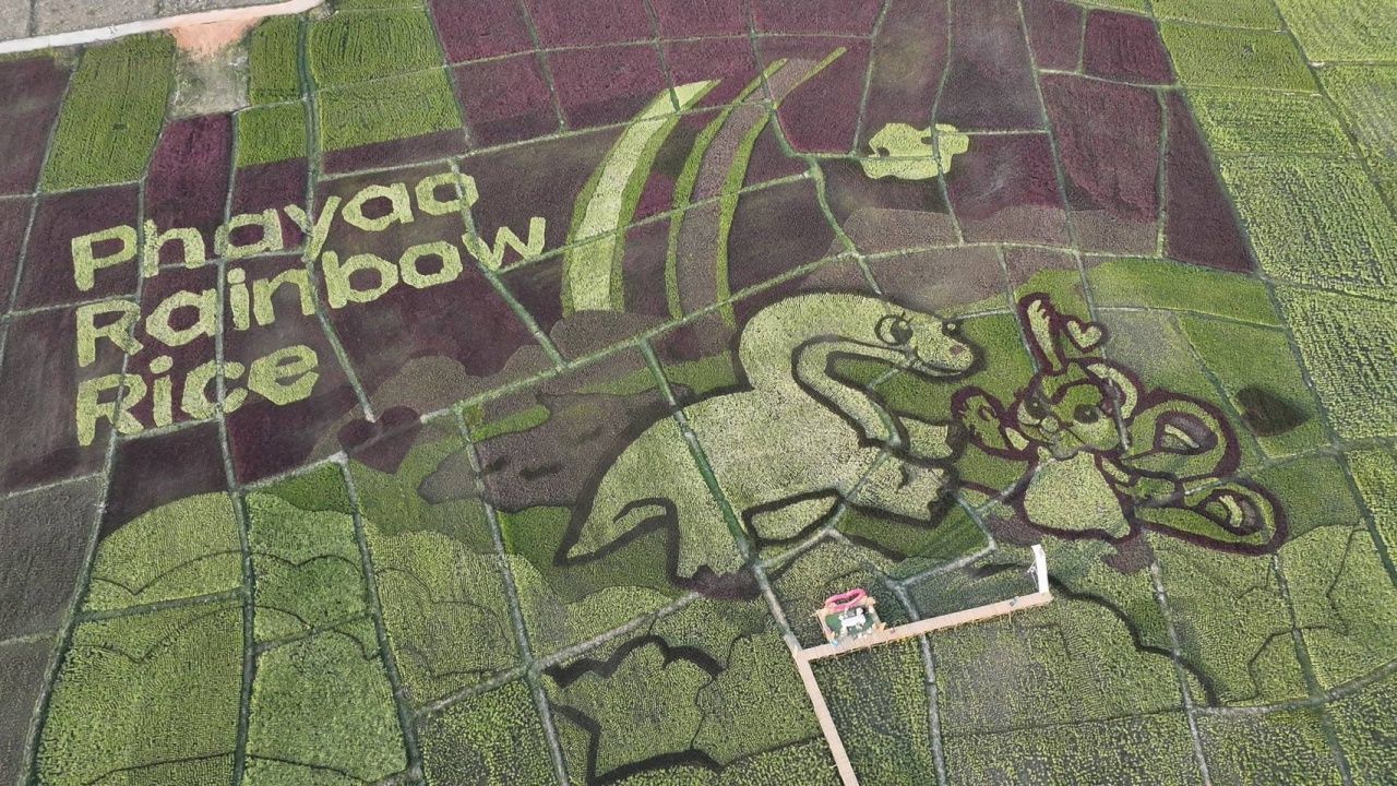 และภายในงานยังมีการปลูกข้าวหลากสีเป็นรูปไดโนเสาร์และนกยูง ซึ่งเป็นสัญลักษณ์ของพื้นที่จังหวัดพะเยา ที่นอกจากเป็นการถ่ายทอดองค์ความรู้การใช้เทคโนโลยีเป็นเกษตรประณีตแล้ว ยังเป็นการสร้างความมั่นคงทางอาหาร และยกระดับรายได้เกษตรกรได้อย่างยั่งยืน อีกทั้งยังเป็นการพัฒนาแปลงนาหลากสีให้เป็นสถานที่ท่องเที่ยวเชิงเกษตรอีกแห่งหนึ่งของจังหวัดพะเยาอีกด้วย