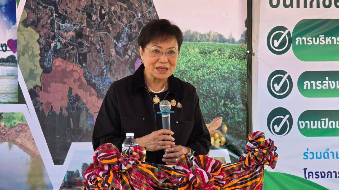 เมื่อวันที่ 23 ธ.ค. คุณหญิงกัลยา โสภณพนิช ในฐานะประธานโครงการจัดการน้ำโดยชุมชนตามแนวพระราชดำริ กล่าวว่า ได้ขับเคลื่อนโครงการนาเพียงโมเดล ในพื้นที่ ต.นาเพียง อ.ชุมแพ จ.ขอนแก่น เพื่อยกระดับการบริหารจัดการน้ำนอกเขตชลประทานอย่างยั่งยืน โดยปัจจุบันภาคอีสานเผชิญวิกฤตความย้อนแย้งด้านทรัพยากรน้ำ ปัจจุบันน้ำฝนตกในแต่ละปีจะตกลงมาบนดินมากถึง 245,000 ล้านลูกบาศก์เมตร ทั่วประเทศ หากเปรียบเทียบ ภาคอีสานฝนตกมากเปรียบ 100 หยด อีสานเก็บได้เพียง 3.5 หยด อีสานไม่ได้แล้ง แต่กลับกักเก็บไว้ใช้ได้เพียง 3.5% เท่านั้น ส่งผลให้น้ำส่วนเกินกว่า 90% กลายเป็นน้ำหลากสร้างความเสียหายและตามมาด้วยสภาวะขาดแคลนน้ำในฤดูแล้ง ปัจจุบันระบบชลประทานของรัฐครอบคลุมพื้นที่เพียง 20% ของประเทศ ที่เหลือเป็นพื้นที่นอกเขตชลประทาน 80% ที่ยังไม่มีความมั่นคงด้านน้ำต้องเผชิญวัฏจักรน้ำท่วม-น้ำแล้งซ้ำซากโดยลำพัง การน้อมนำแนวพระราชดำริของรัชกาลที่ 9 มาปรับใช้ภายใต้หลักการหาที่ให้น้ำอยู่ หาที่ให้น้ำไหลและเก็บน้ำที่เหลือไว้ใต้ดิน จึงเป็นทางออกที่จะช่วยเหลือเกษตรกรได้