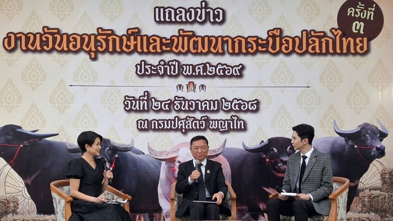 กรมปศุสัตว์ จัดแถลงข่าวงานวันอนุรักษ์และพัฒนากระบือปลักไทย ประจำปี 2569 ระหว่างวันที่ 13 - 14 ม.ค. 69 เพื่ออนุรักษ์ สืบสาน รักษา ต่อยอด กระบือปลักไทย ภายใต้หลัก “ปรัชญาของเศรษฐกิจพอเพียง และการอนุรักษ์สายพันธุ์กระบือปลักไทย”