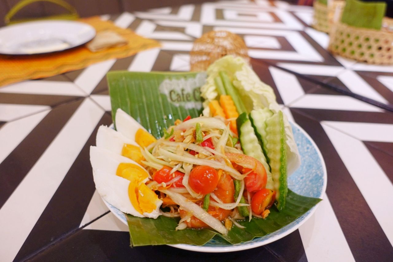 เริ่มต้นกันที่ ส้มตำปลาร้า เมนูซิกเนเจอร์ของอาหารอีสาน ซึ่งทางร้านต้มน้ำปลาร้าเอง ไม่ให้มีกลิ่นคาว ปรุงสุกถูกสุขลักษณะ แต่ยังคงมีความกลมกล่อมอูมามิ เลือกระดับความเผ็ดได้ตามต้องการ ต่อมาเป็นเมนู ไก่ย่าง รสชาติอร่อยเนื้อนุ่มชุ่มฉ่ำ