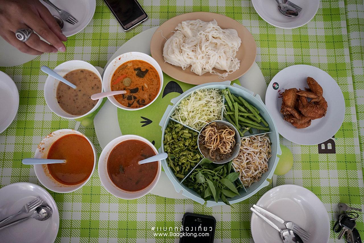 ขับรถออกจาก กทม. แต่เช้าแบบไม่พักกันเลยค่ะ ทำให้เราถึงโคราชในช่วงที่ท้องร้องพอดี เช้าแบบนี้ต้องจัดอาหารลงท้องกันก่อน มื้อแรกจะพาไปทานร้านเด็ดเป็นร้านเก่าแก่ขายมา 20 ปีแล้วอย่าง ขนมจีนครูยอด มีชื่อเสียงคนแน่นจนต้องขยายกิจการเปิดร้านใหม่ใหญ่โตกว่าเดิม ขนมจีน เสิร์ฟพร้อมน้ำยาสี่อย่าง ได้แก่ น้ำยาไก่ น้ำพริก น้ำยาป่า น้ำยากะทิ พร้อมผักที่มาทั้งถาด เมนูร้านครูยอดเยอะมาก ทีเด็ดห้ามพลาด ไก่ทอด ส้มตำข้าวโพด ปลาดุกฟู และอีกหลายๆ เมนู