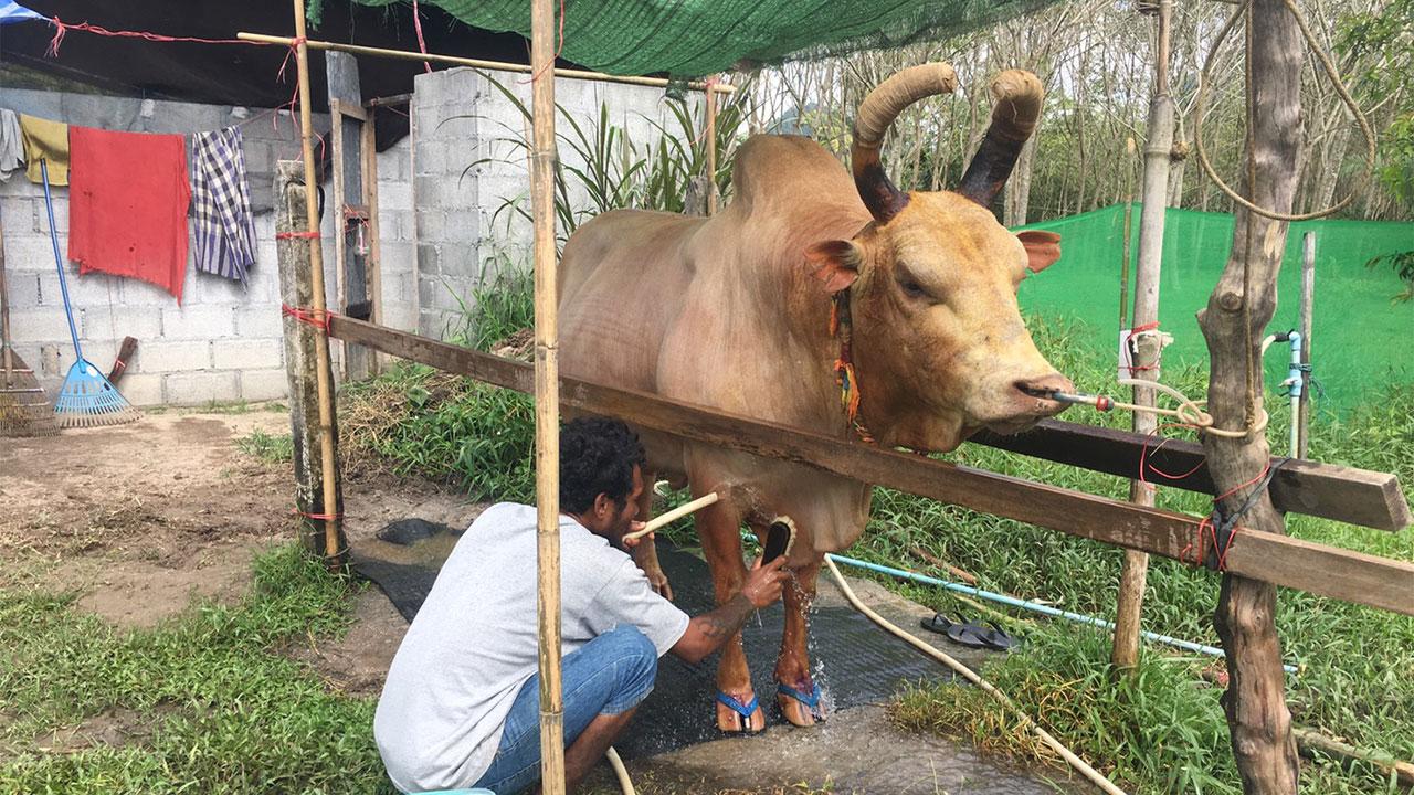 โคขาว หินหงษ์ และ โคโหนดแสนชัยลูกสายัณห์ คู่วัวชนเงินล้านเดินทางมาพักที่คอกข้างสนามกีฬาชนโคทุ่งโพธิ์สเตเดียม จ.นครศรีธรรรมราช โดยมีการจัดทีมงานดูแลใกล้ชิด พร้อมติดกล้องวงจรปิด หว่นคนไม่หวังดีวางยาวัว...