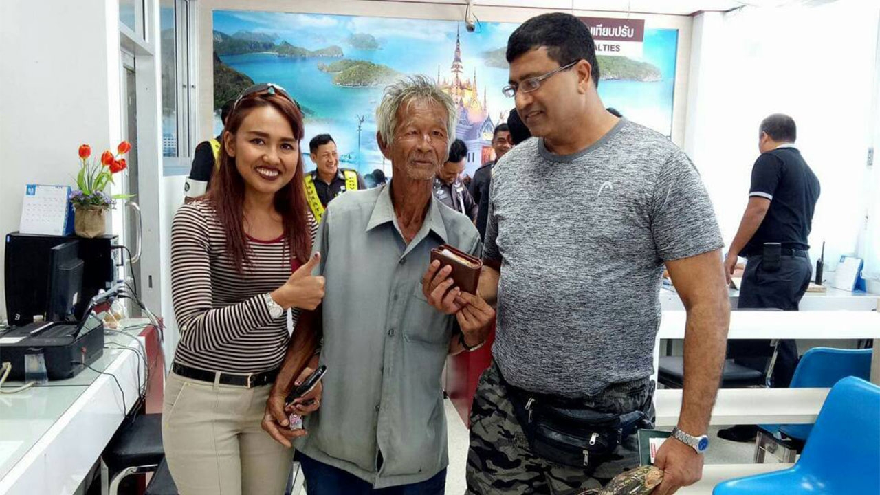 เมื่อวันที่ 9 มี.ค.60 พ.ต.อ.ศิริชัย ทรงวศิน ผกก.สภ.เมืองสุราษฎร์ธานี พ.ต.ท.สมสิน เกิดผล รอง ผกก.(สอบสวน)สภ.เมืองสุราษฎร์ธานี ร่วมเป็นพยานรับมอบคืนกระเป๋าเงินของ พ.ต.อ.ราเชนดีน ไอเยอร์ อายุ 52 ปี นายตำรวจจากประเทศแอฟริกาใต้ ที่ภายในมีเงินสดจำนวน 1,900 ดอลล่า เงินเรนด์ 500 เรนด์ เงินไทยจำนวน 1 หมื่นบาท บัตรเครดิต 2 ใบ และเอกสาร อื่นๆอีกจำนวนหนึ่ง รวมมูลค่ากว่า 100,000 บาท จากนายบรรพต โชติกพันธ์ อายุ 74 ปี ลุงปั่นสามล้อรับจ้าง ซึ่งเป็นคนเก็บได้ที่บนถนนหน้าตลาดโต้รุ่งถนนหน้าเมืองแล้วนำมามอบให้กับตำรวจเพื่อติดตามหาเจ้าของกระเป๋ามารับคืน