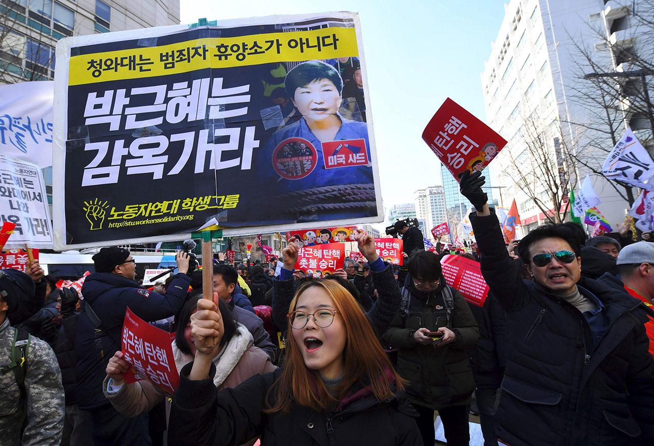 ปาร์ก กึน เฮ คอตก.. อาจโดนดำเนินคดีตามกระบวนการยุติธรรม หลังศาลรัฐธรรมนูญตัดสินถอดถอนจากตำแหน่ง จนกลายเป็นผู้นำคนแรกของประเทศที่ถูกอิมพีชเมนต์ และสูญเสียเอกสิทธิ์คุ้มครองทางกฎหมาย ขณะที่ชาวเกาหลีใต้ต่อต้านปาร์ก กึน เฮออกมาชุมนุม ดีใจกับชัยชนะไล่พ้นจากตำแหน่งสำเร็จแล้ว